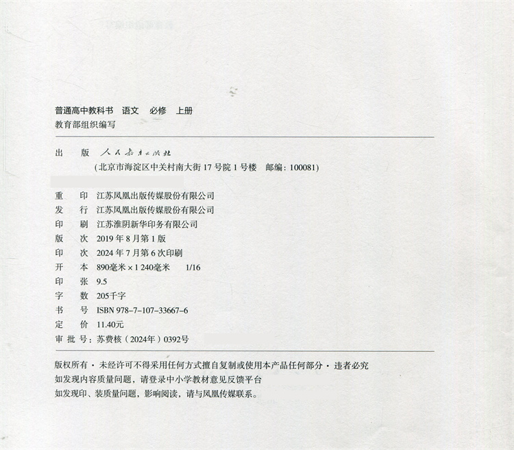 2024年秋 高中语文必修上册 人教版课本 部编版 必修上册 正版 语文书课本教科书高一 语文教材上册 RJ