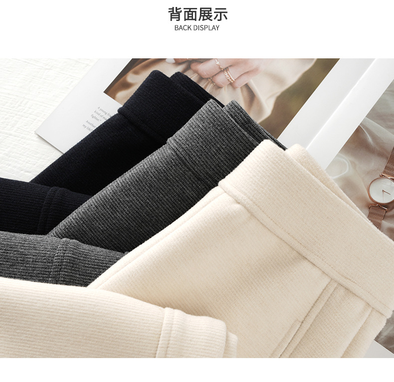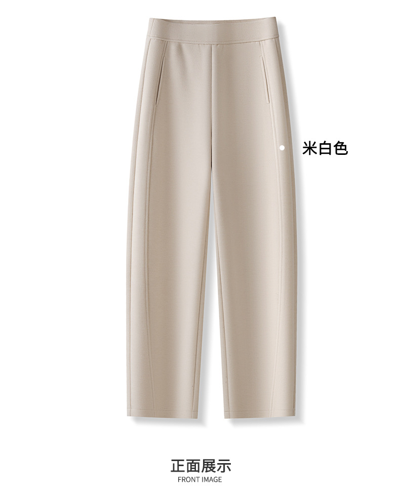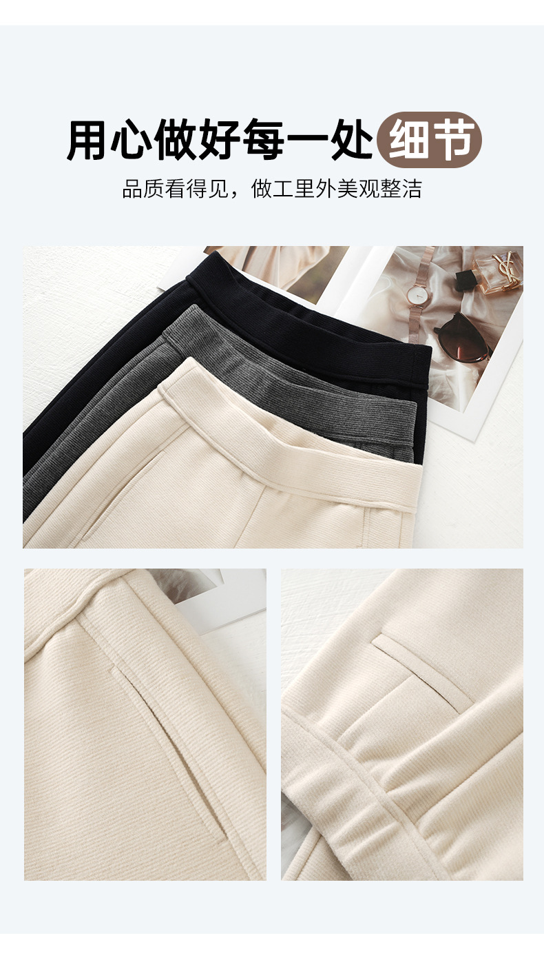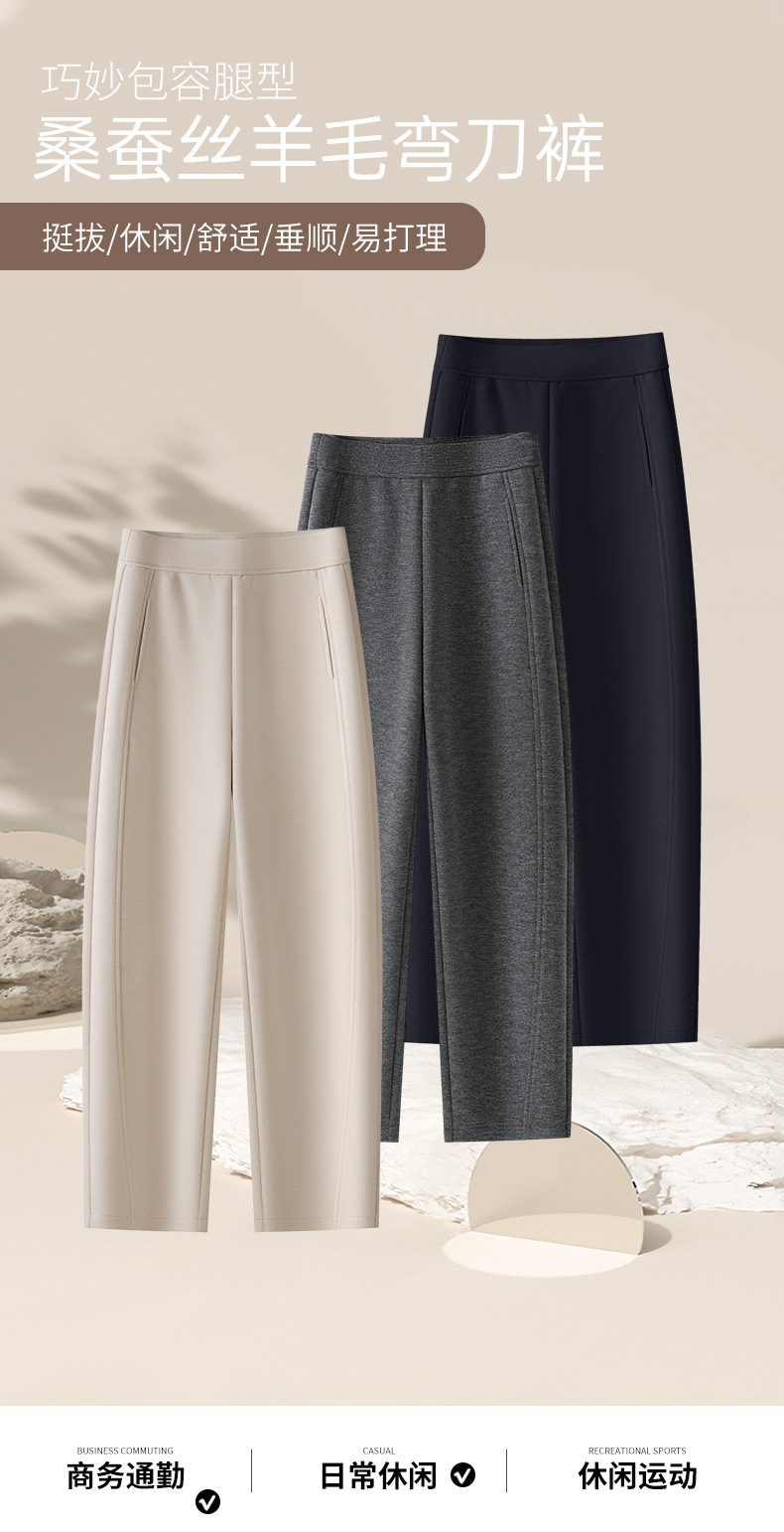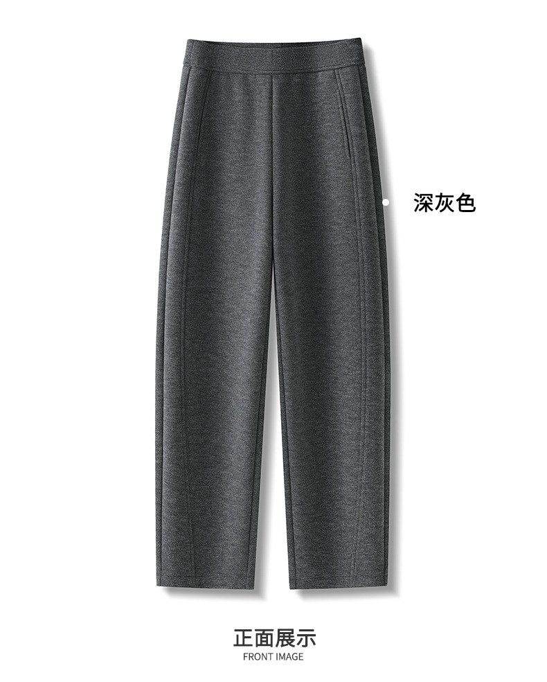 HSS 2980B直筒羊毛裤加厚宽松显瘦休闲羊毛呢弯刀裤