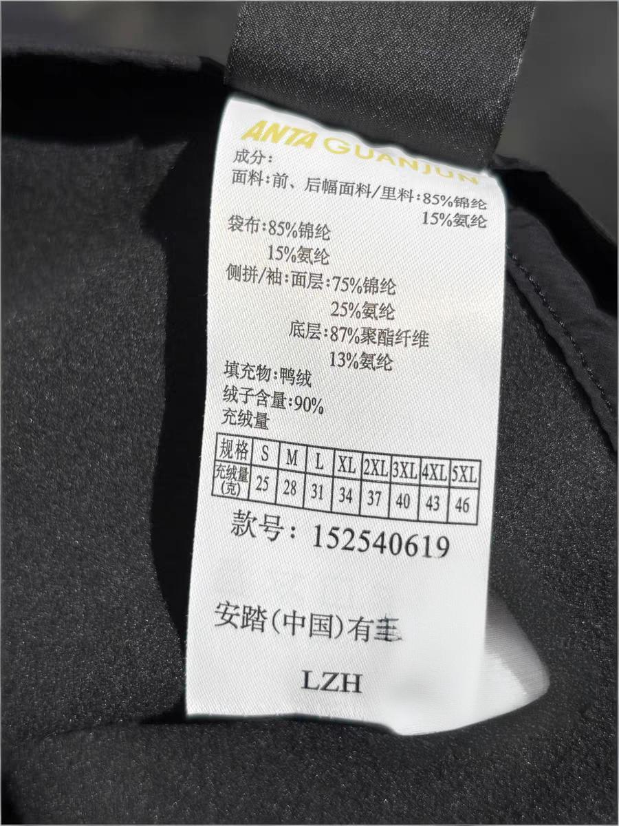 安踏冠军2025年冬装新款男士立领羽绒修身梭织上衣152540619
