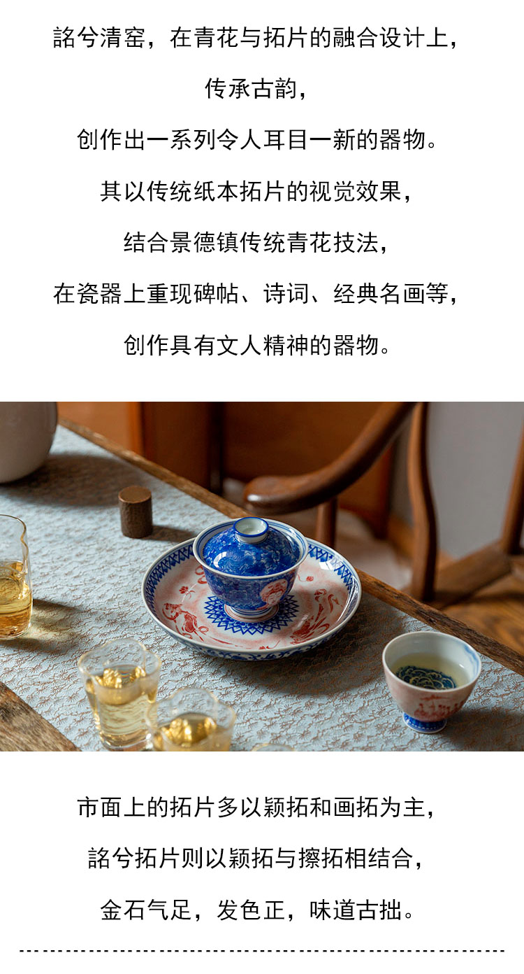茶香记 三兔共耳壶承 詺兮清窑 青花拓片 明艳雅致 赏用皆宜