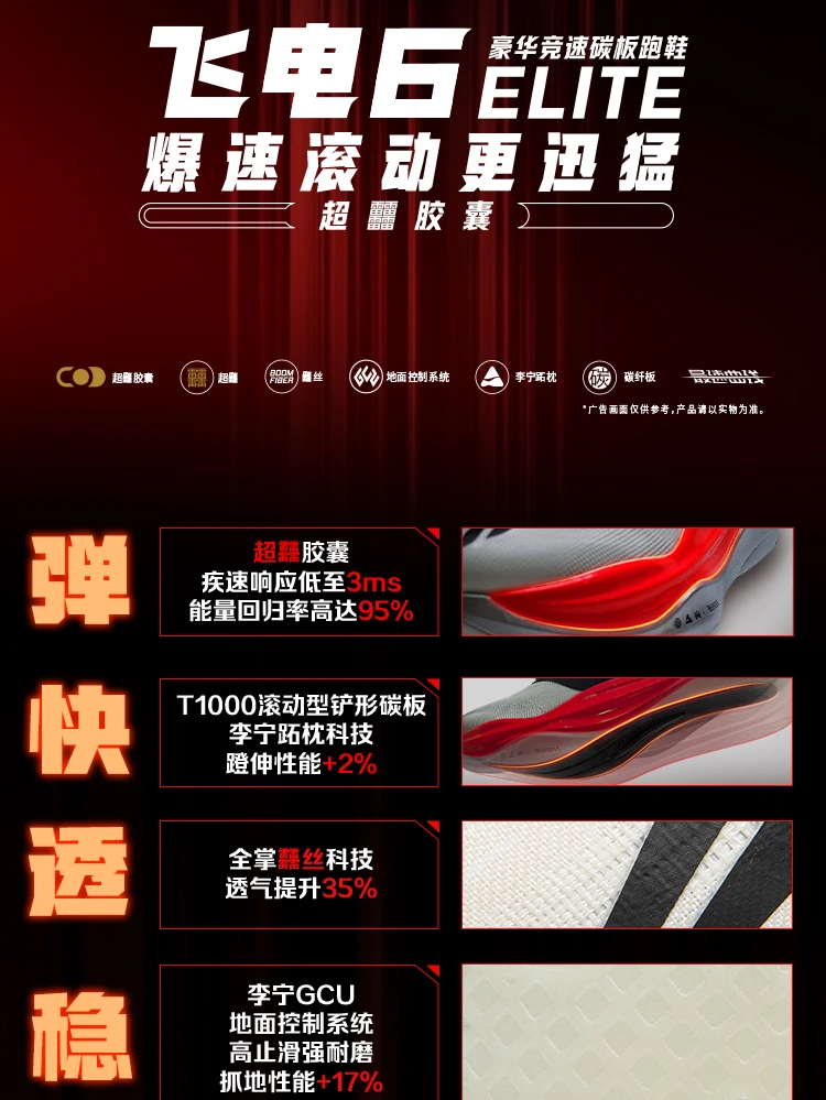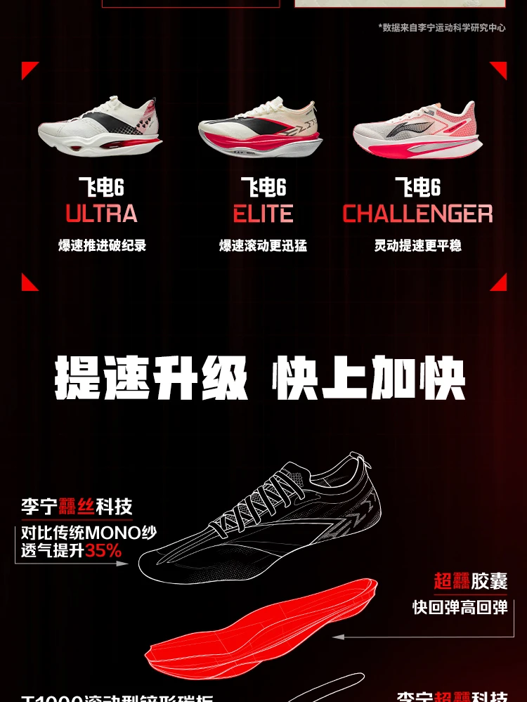 李宁飞电6 ELITE男女同款䨻丝轻量高回弹竞速比赛跑鞋ARMW001