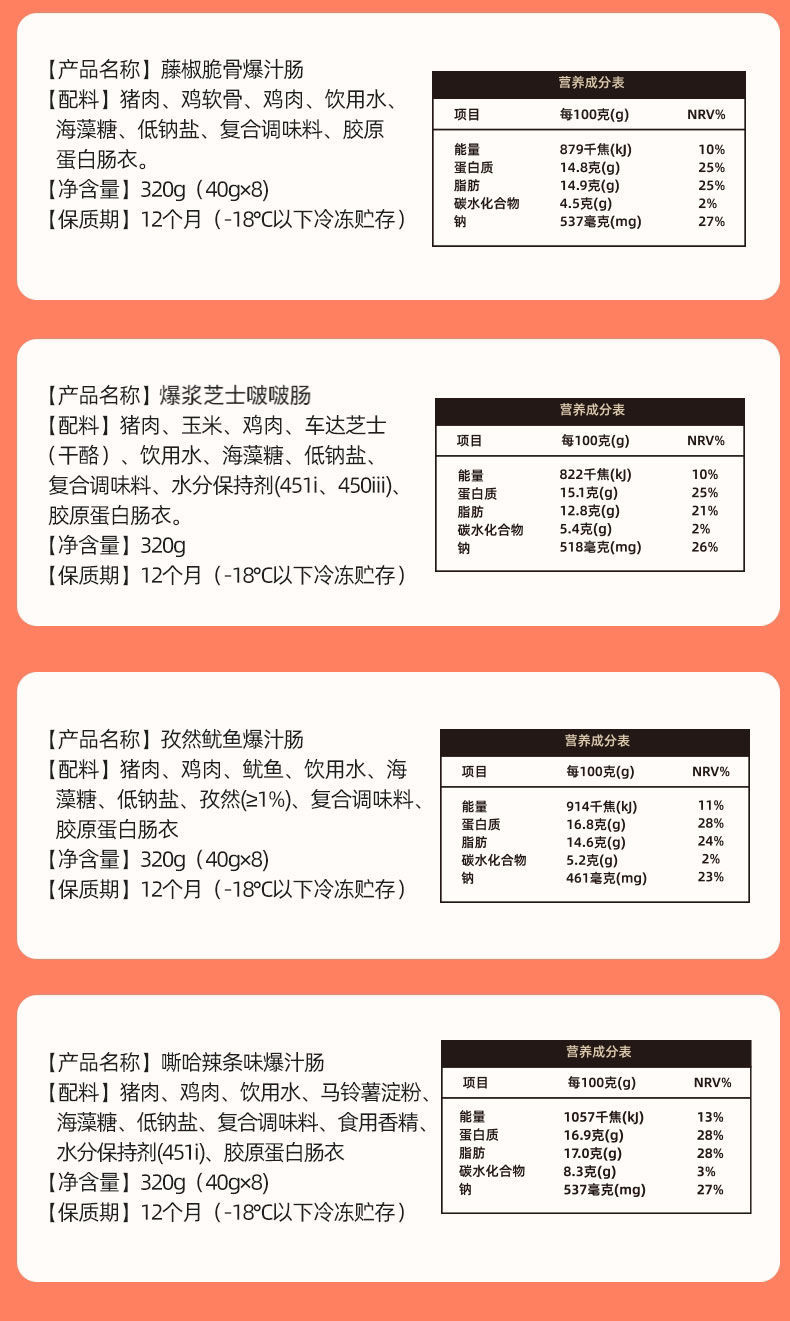 三盒装!【好滋味,轻享受!】追肉记爆汁烤肠 火山石烤肠 热狗肠黑猪原味芝士 黑胡椒味香肠320g-QQ