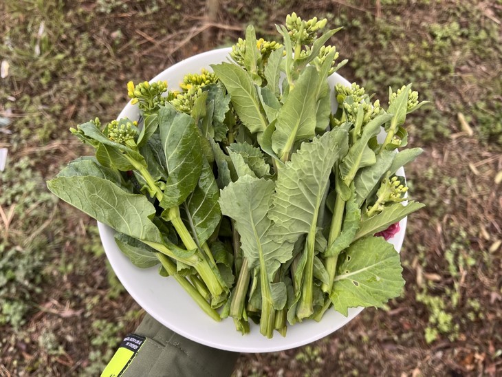 永军是咱们的老朋友了,咱们合作了花生、三色薯、银耳等,今年还种了点十字花科的叶菜,留了一部分做菜薹,吃起来也是水嫩清甜。