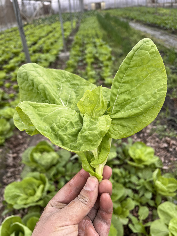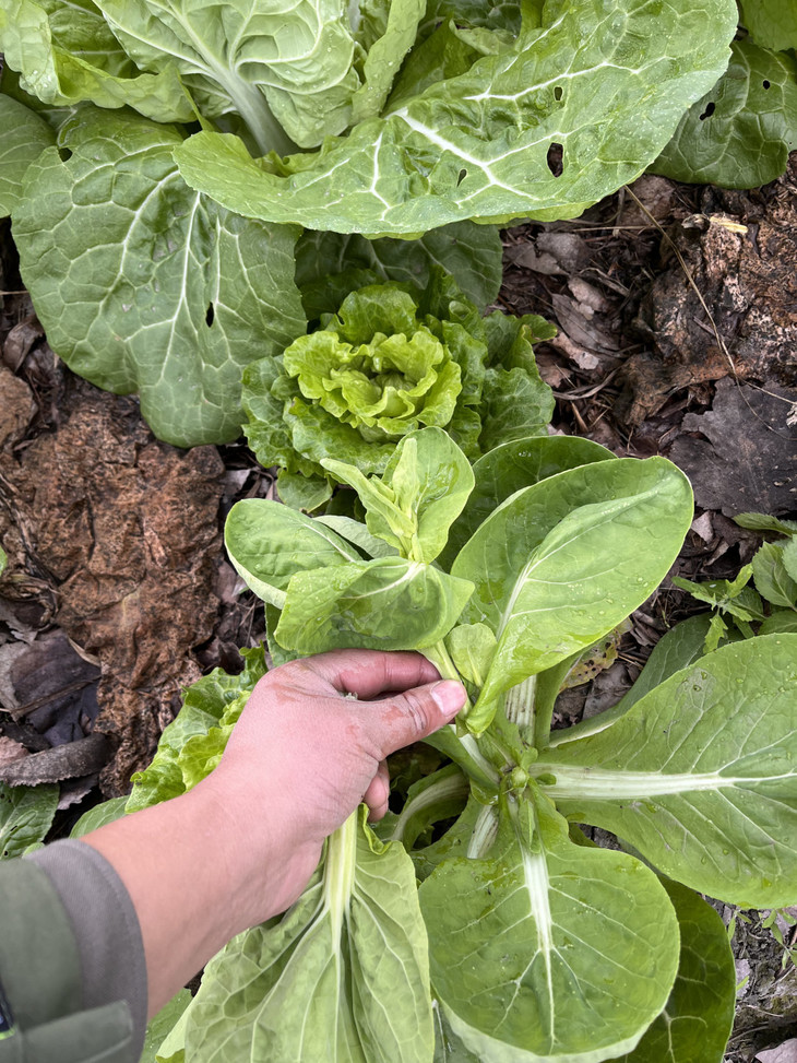 永军的基地是荒废6年的荒地重新开荒,开始生态种植,肥源为发酵的猪粪,油枯;使用有机标准允许使用的生物制剂防治病虫害,人工除草。