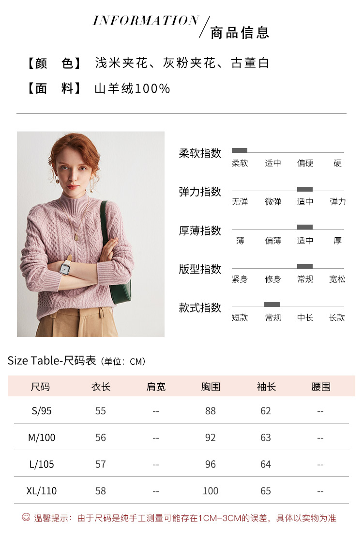 PALUOPO/PL半高领女衫ET20067R-B/约重340g帕罗