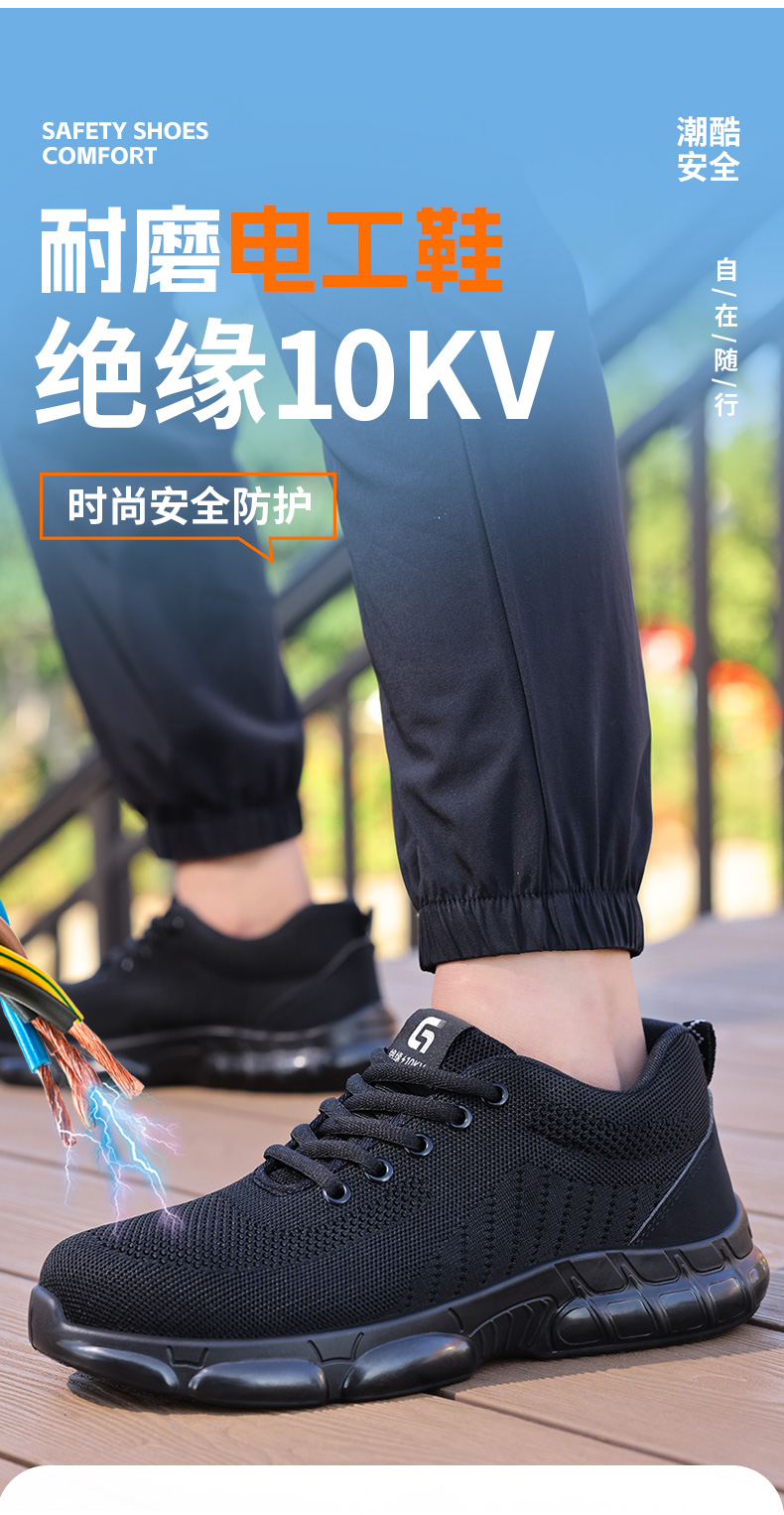 2025绝缘10KV劳保鞋防砸防刺男实心底四季款塑包头工作鞋安全鞋