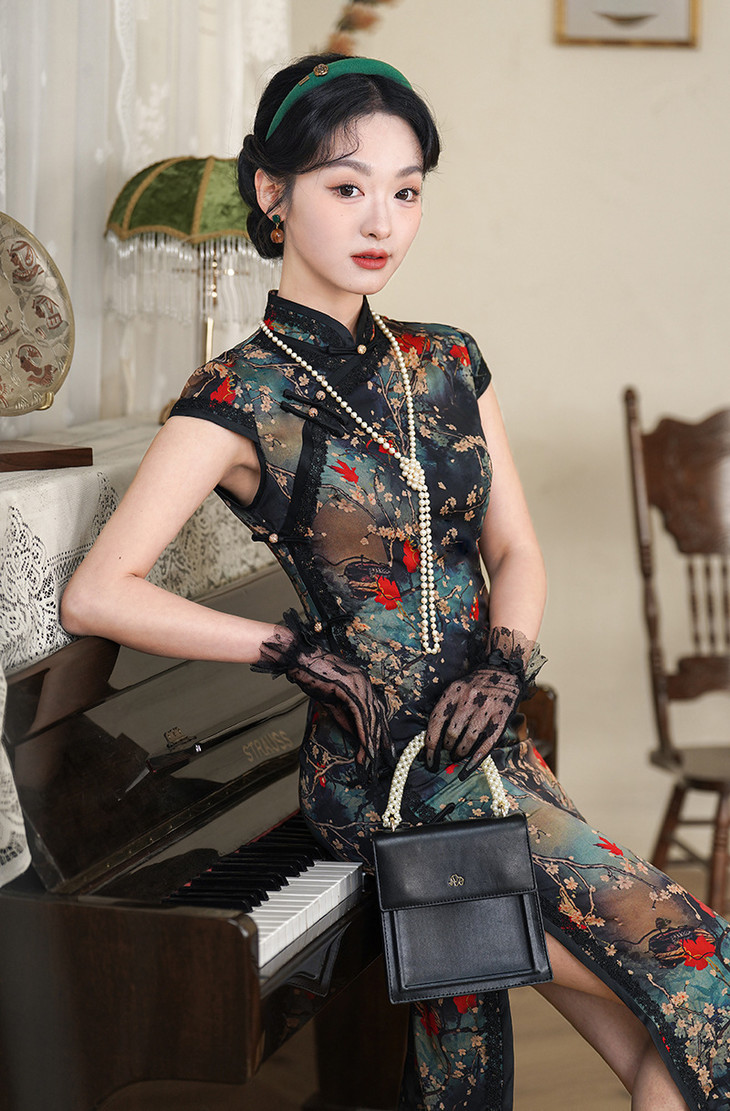 改良旗袍日常国风,修身民国风文艺XL2073