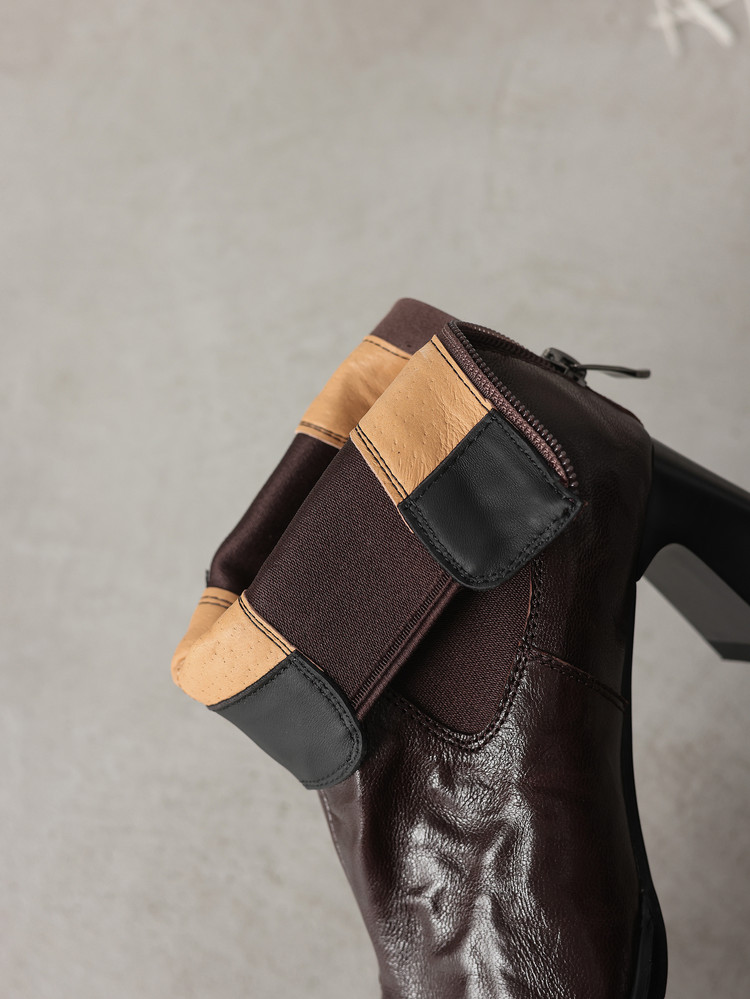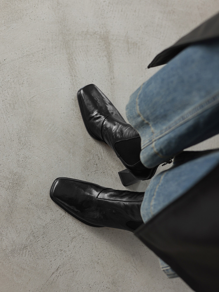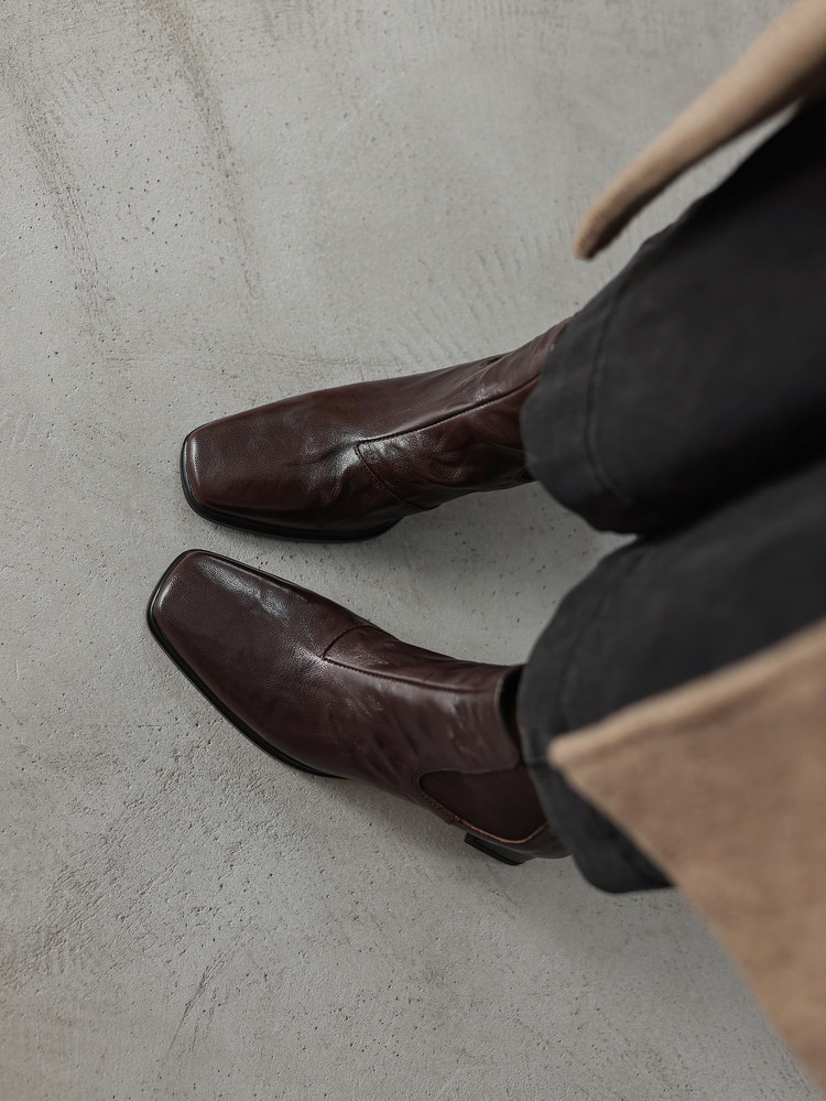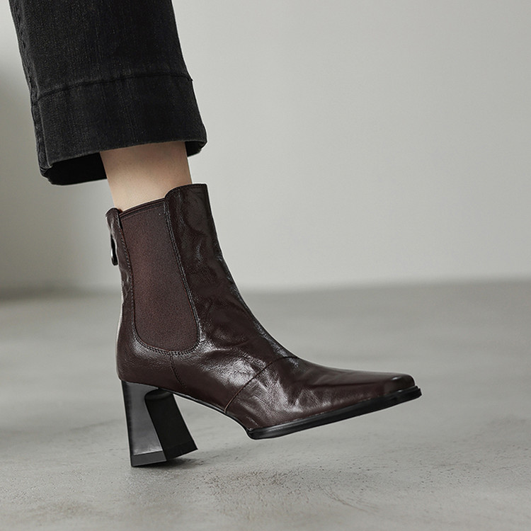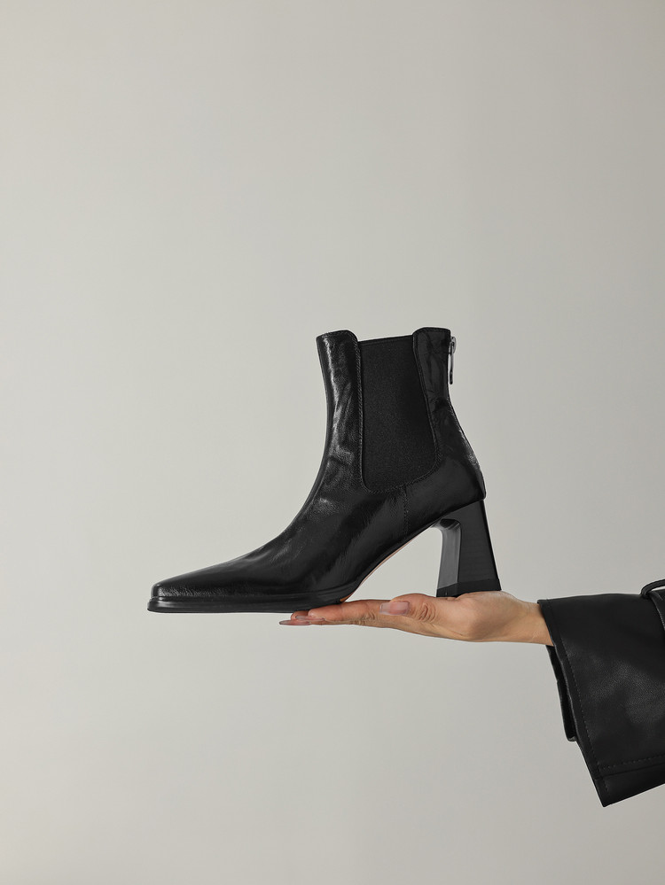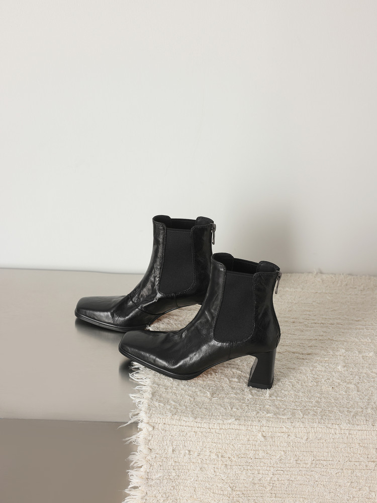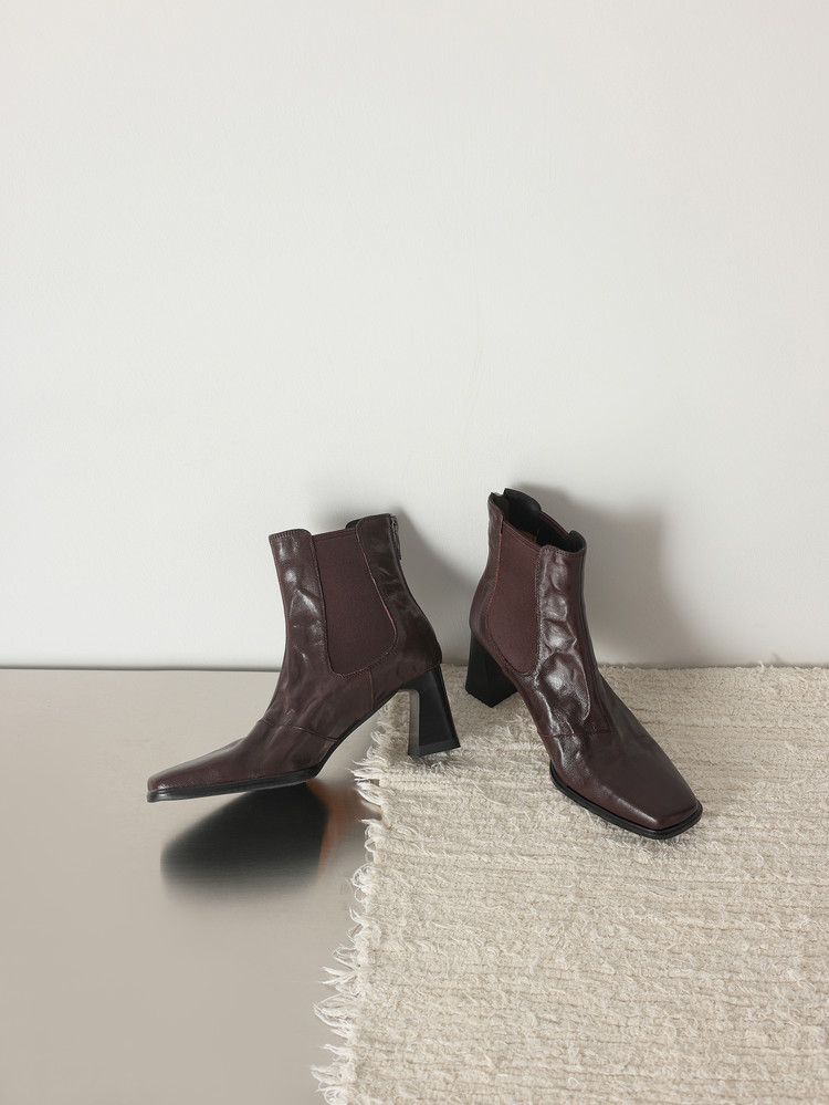 【预售5天】秋冬新款法式手抓羊皮高跟粗跟短靴女复古松紧带方头切尔西靴HB&1406