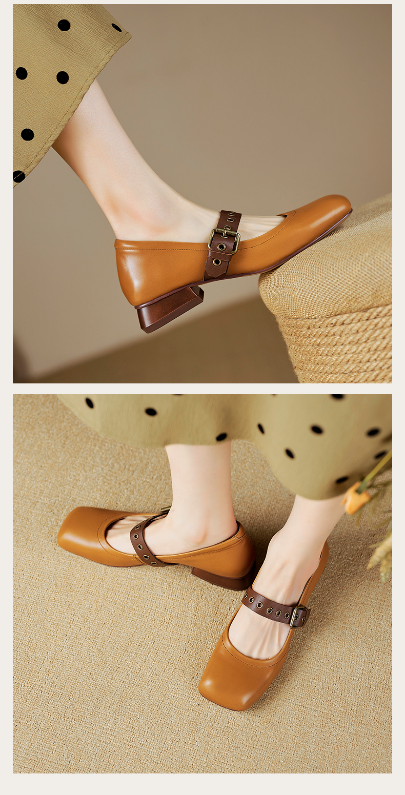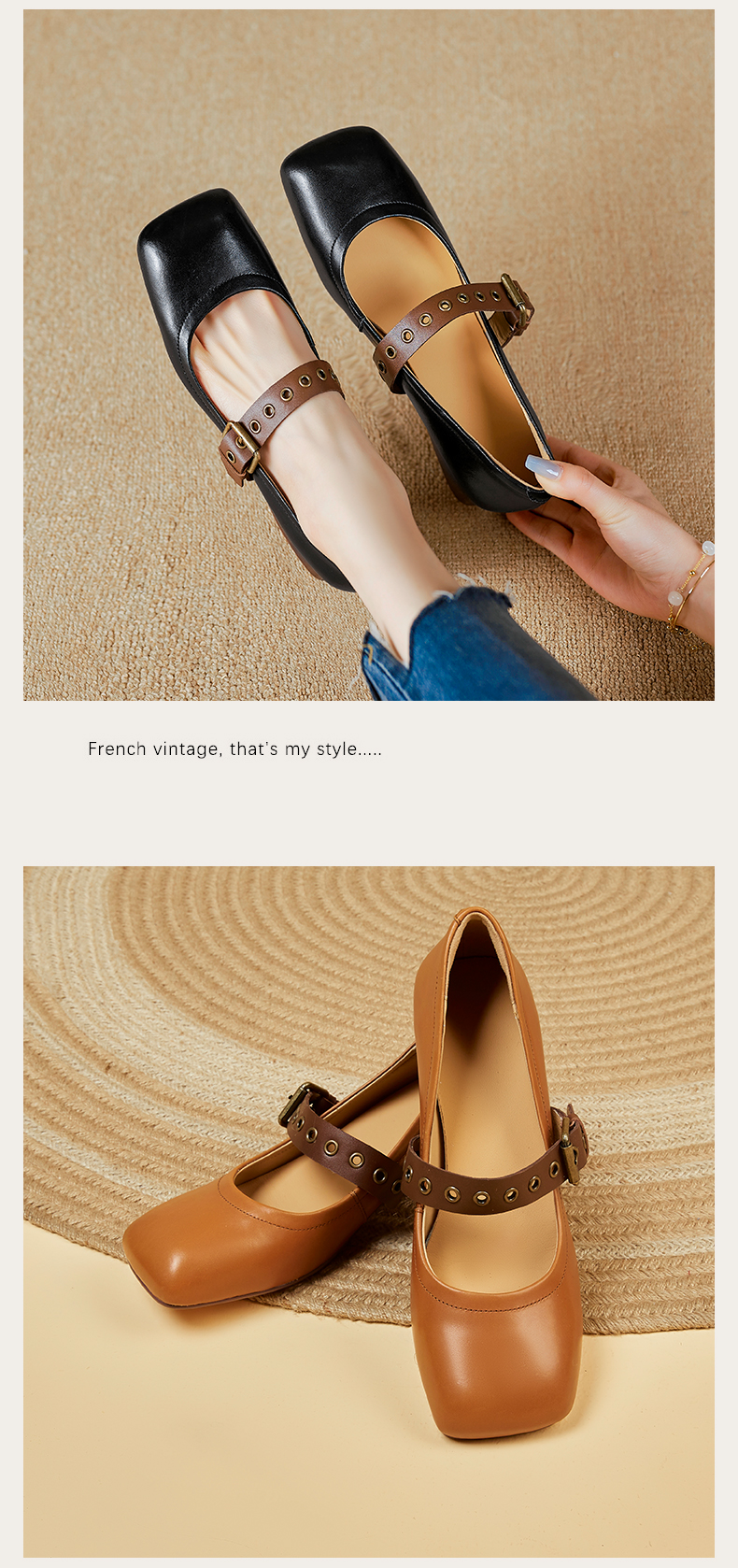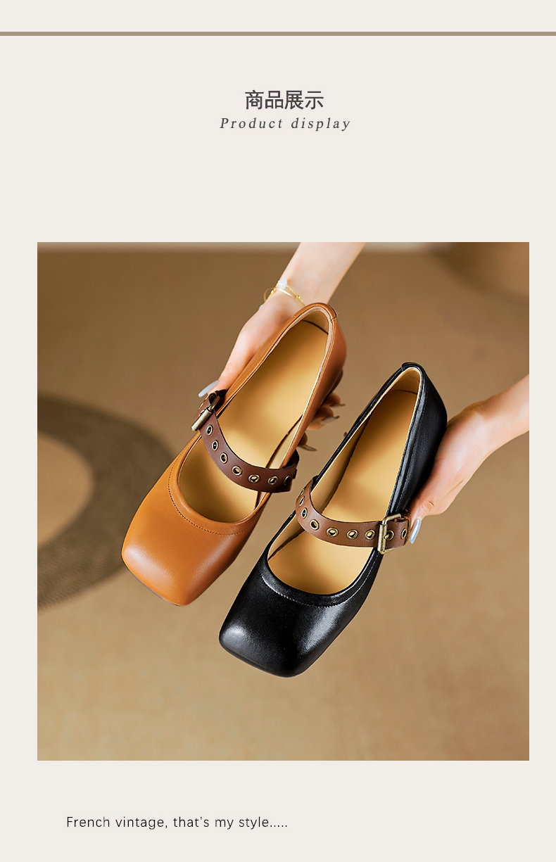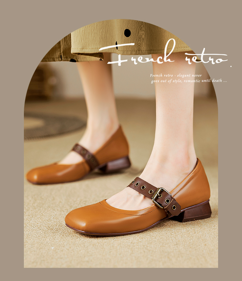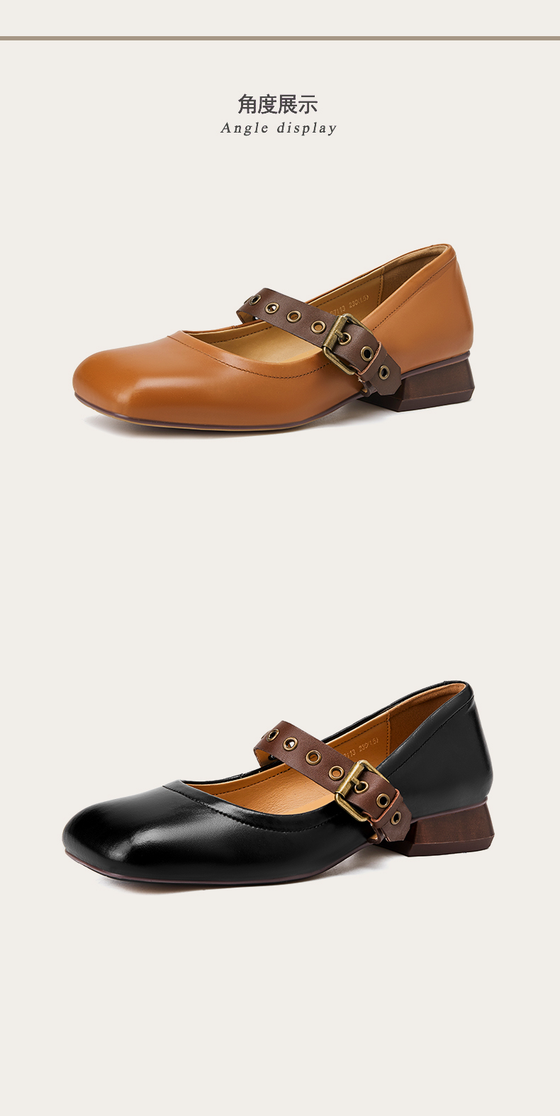 【预售5天】新春复古,牛皮舒适带小低跟皮鞋女单鞋XHD&D2406