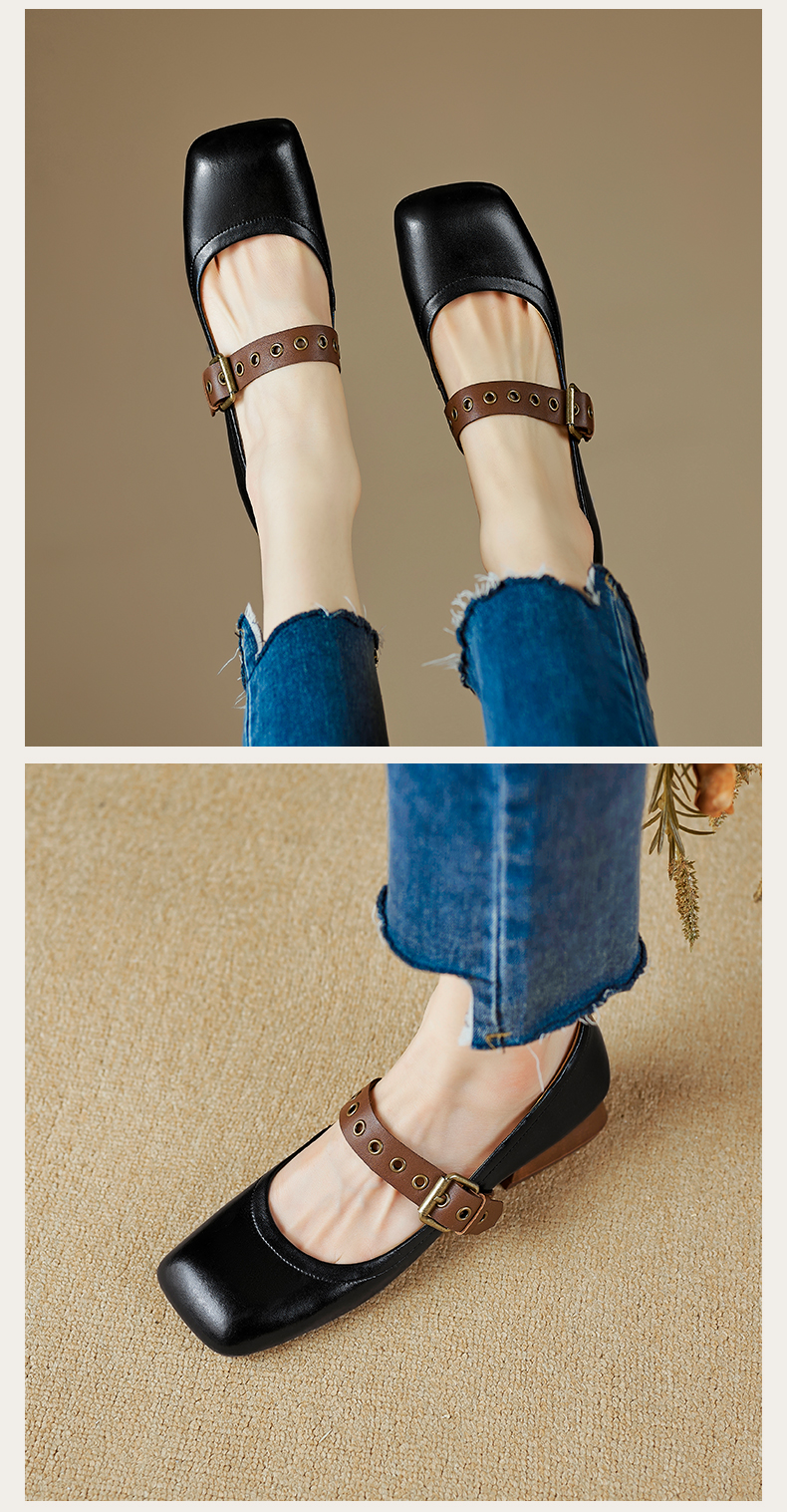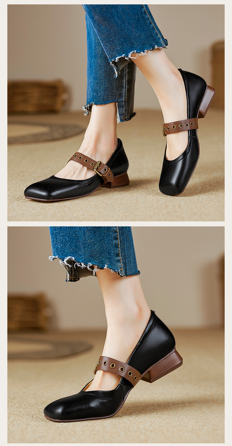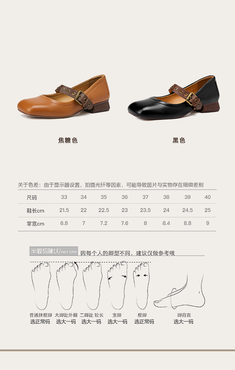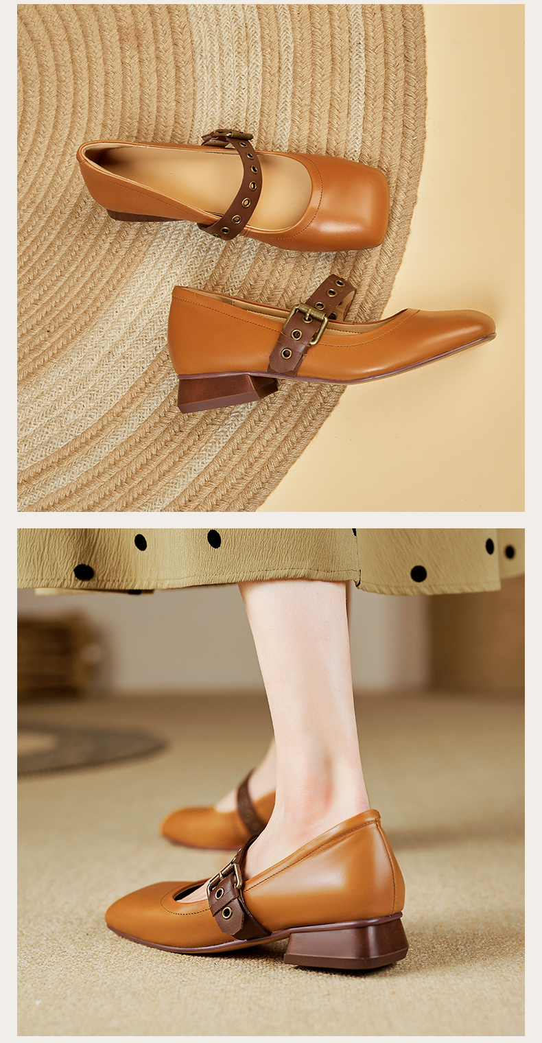 【预售5天】新春复古,牛皮舒适带小低跟皮鞋女单鞋XHD&D2406