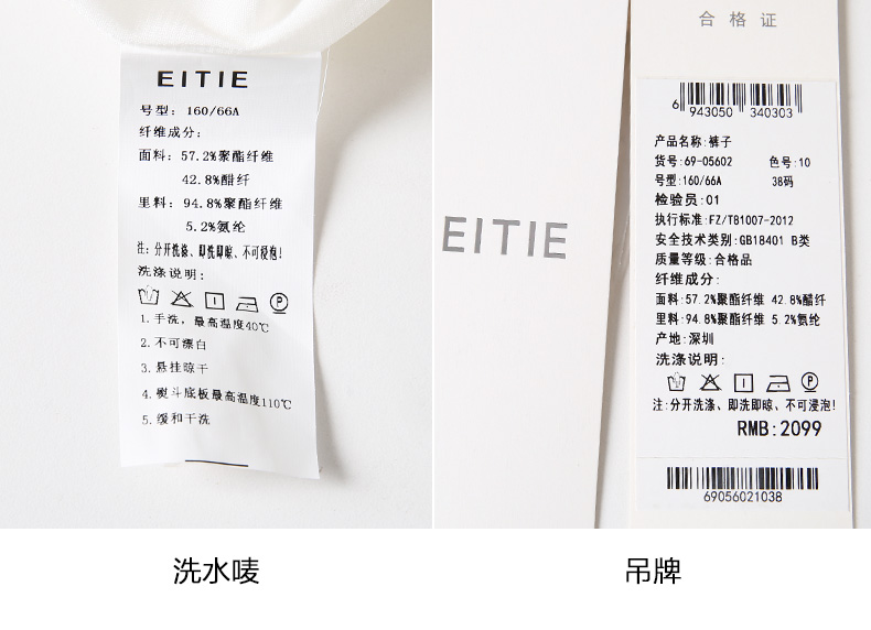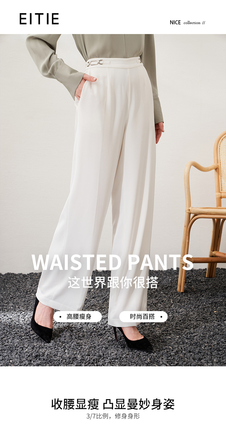EITIE爱特爱春季新款通勤职业干练时尚显瘦西裤直筒长裤女裤子6905602