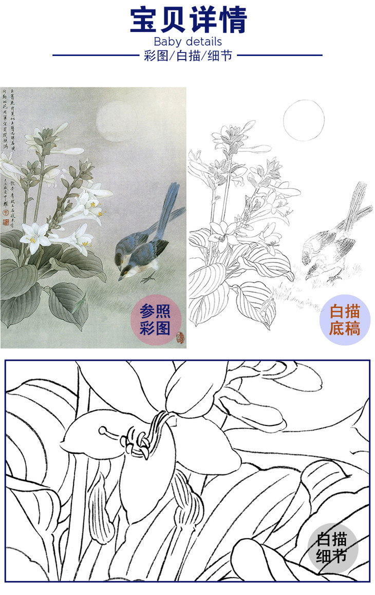 竖幅工笔花鸟白描底稿-周中耀《夜来香》-多种白描尺寸可选-ZT10