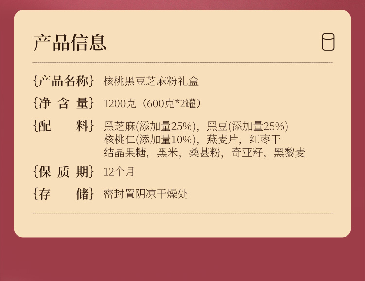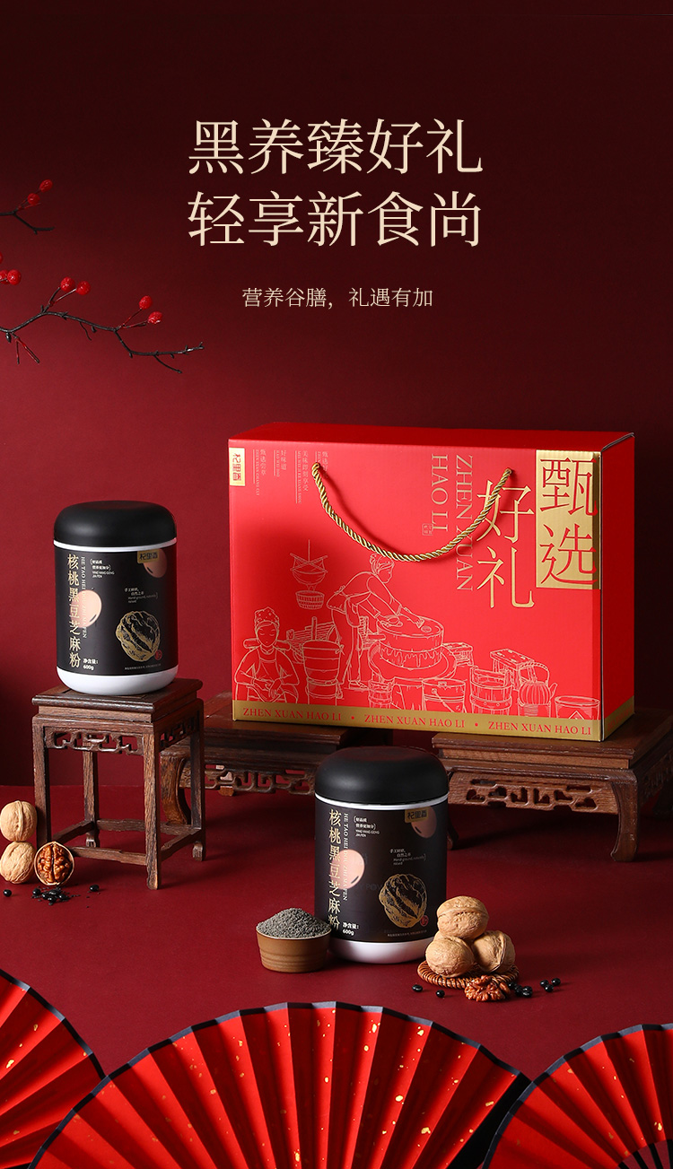【冬季滋补】杞里香1000g礼盒山药粉(2罐装)、杞里香1200g礼盒核桃黑豆芝麻粉(2罐装)代餐粉新年礼盒送礼年货