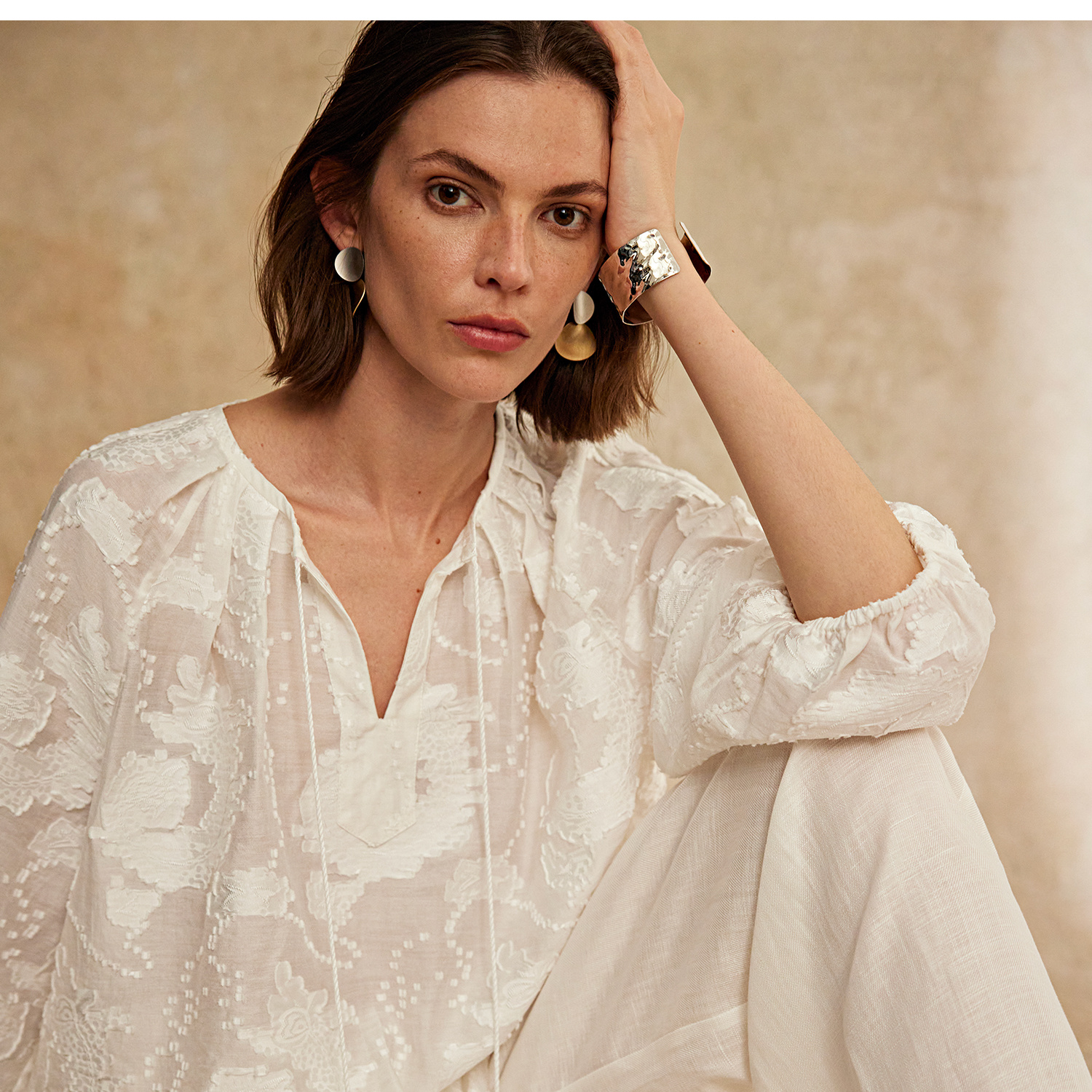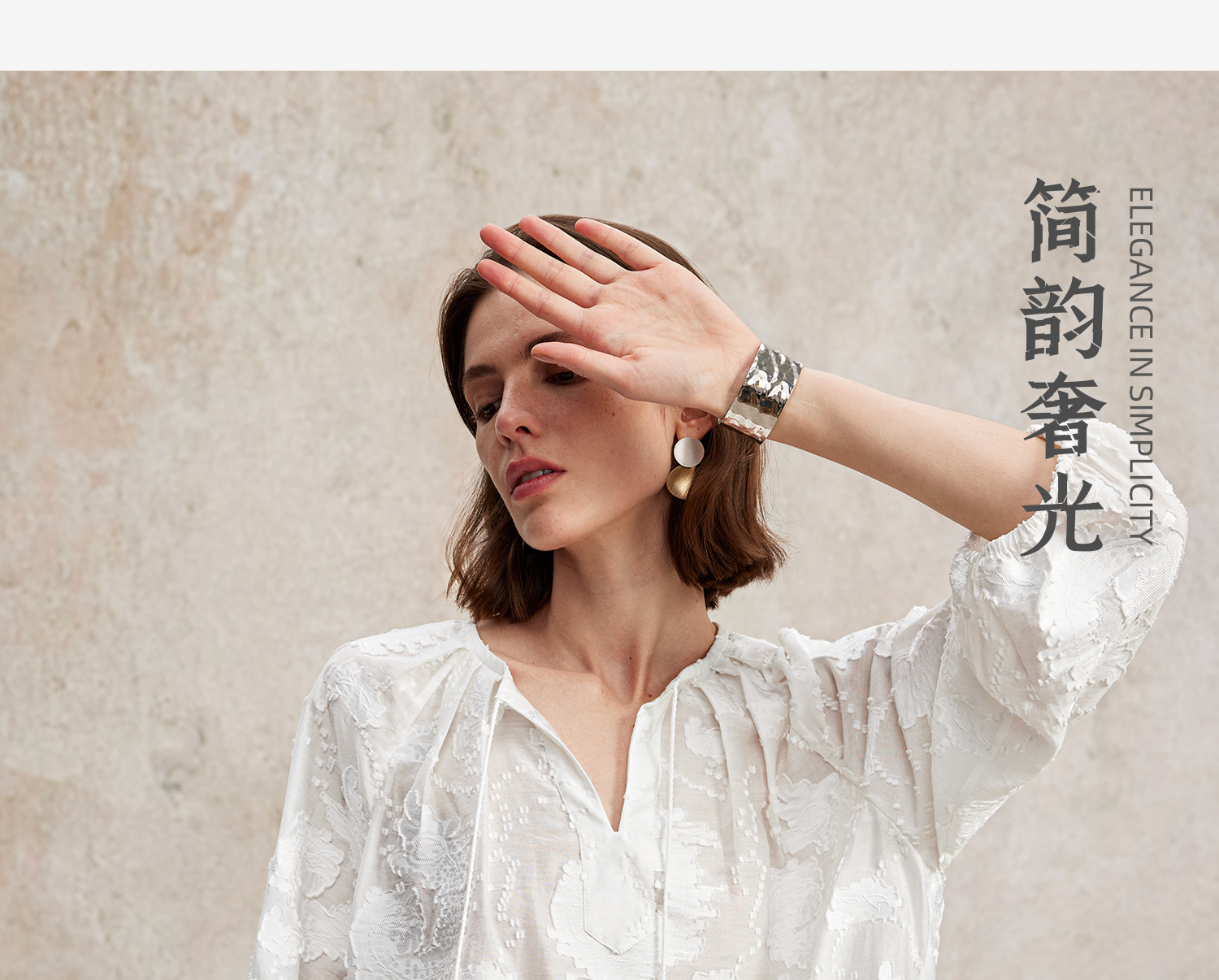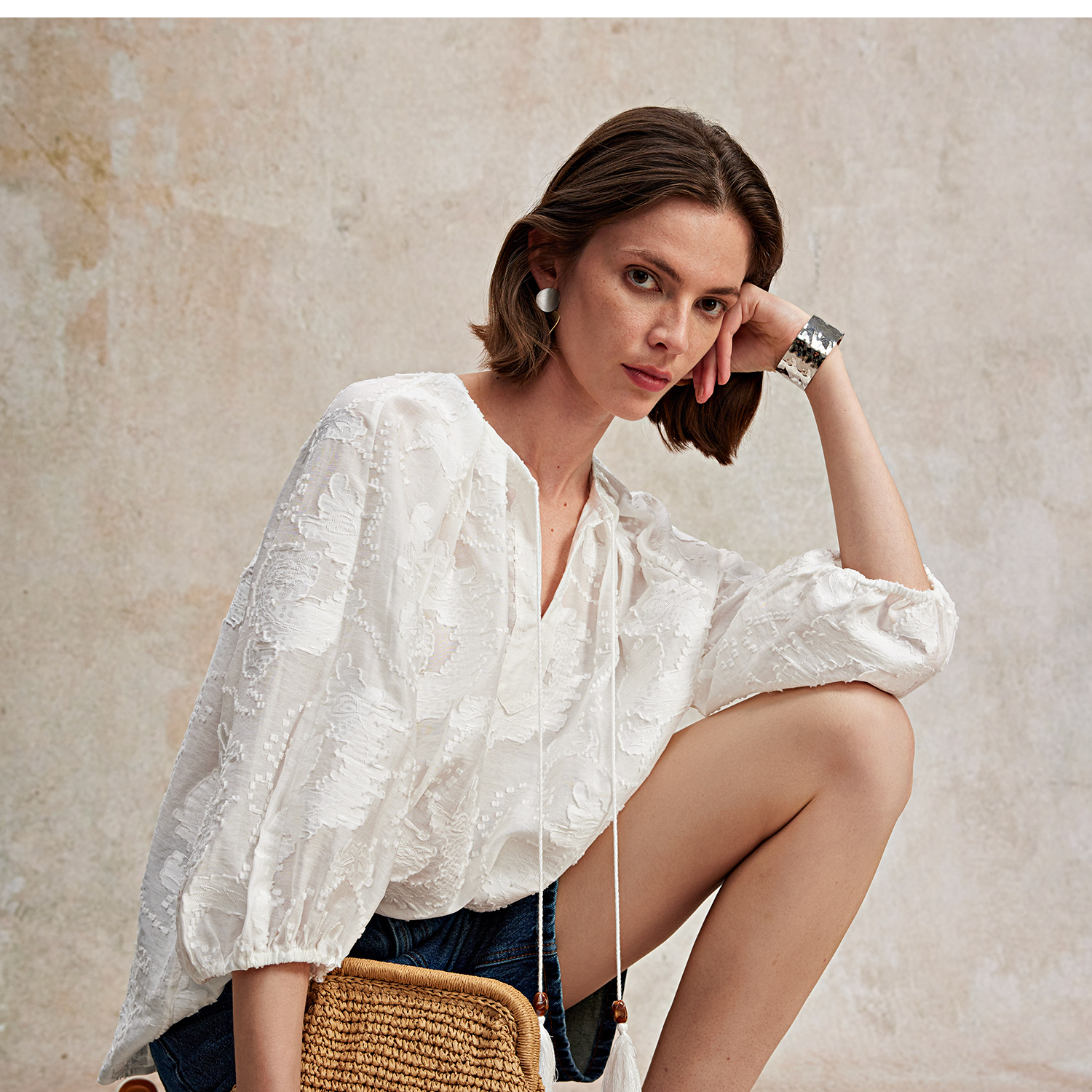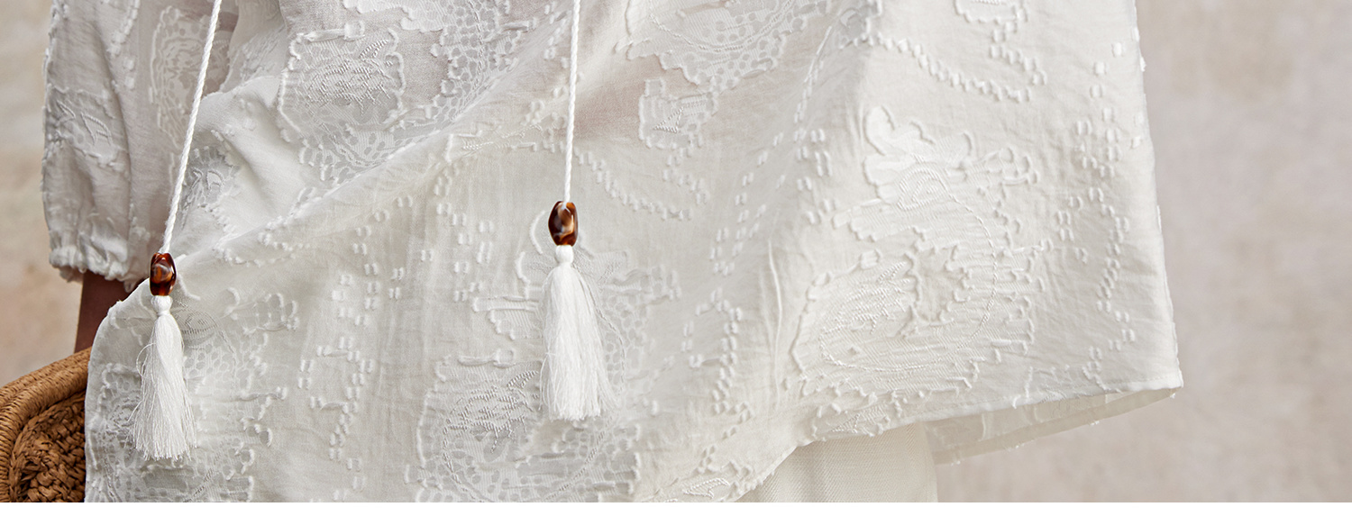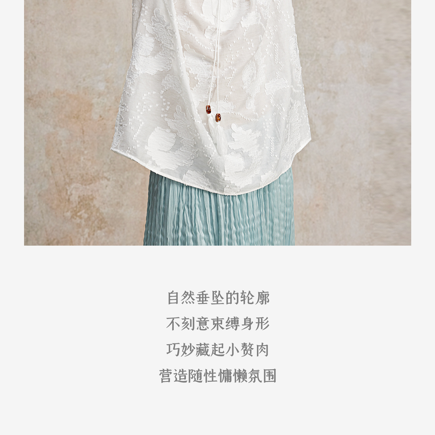 西嘉原创设计 法式浪漫度假风衬衫花卉提花V领七分泡泡袖上衣女夏CS2502081