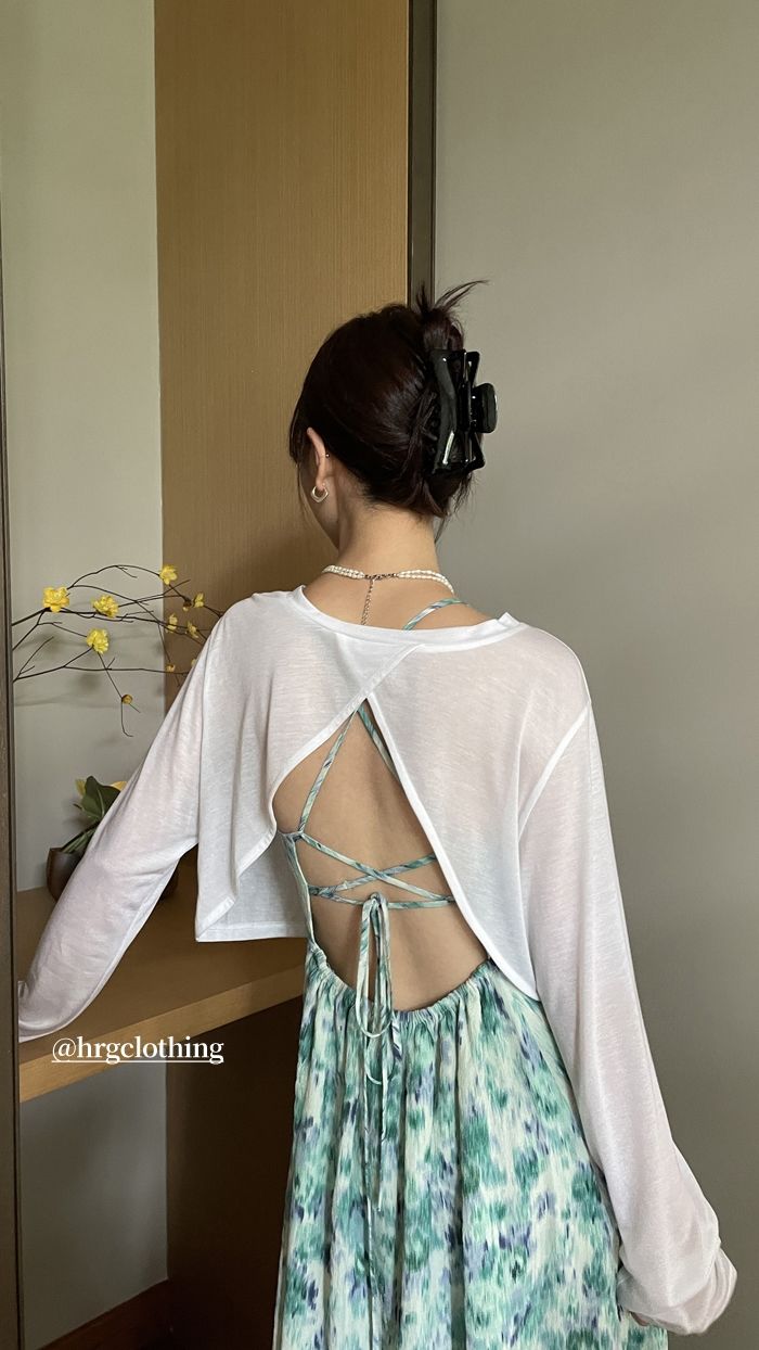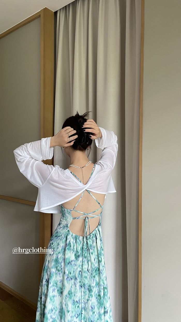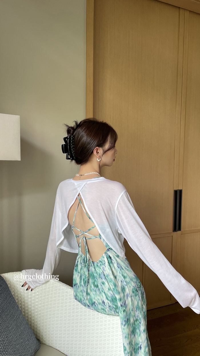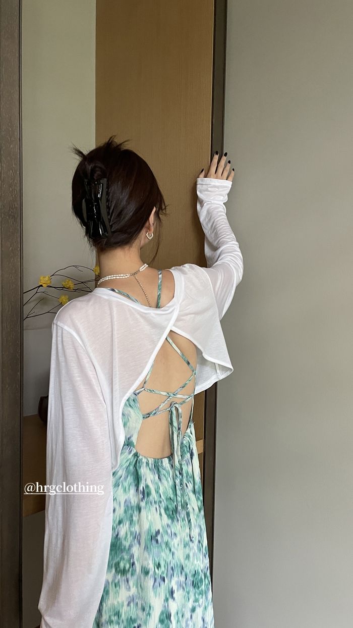 韩版长袖防晒罩衫上衣+性感露背绑带设计感小众吊带连衣裙两件套