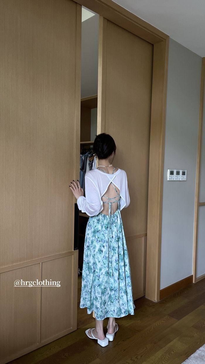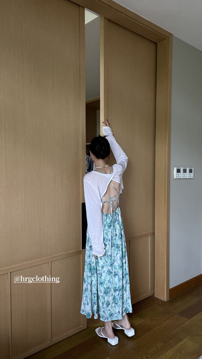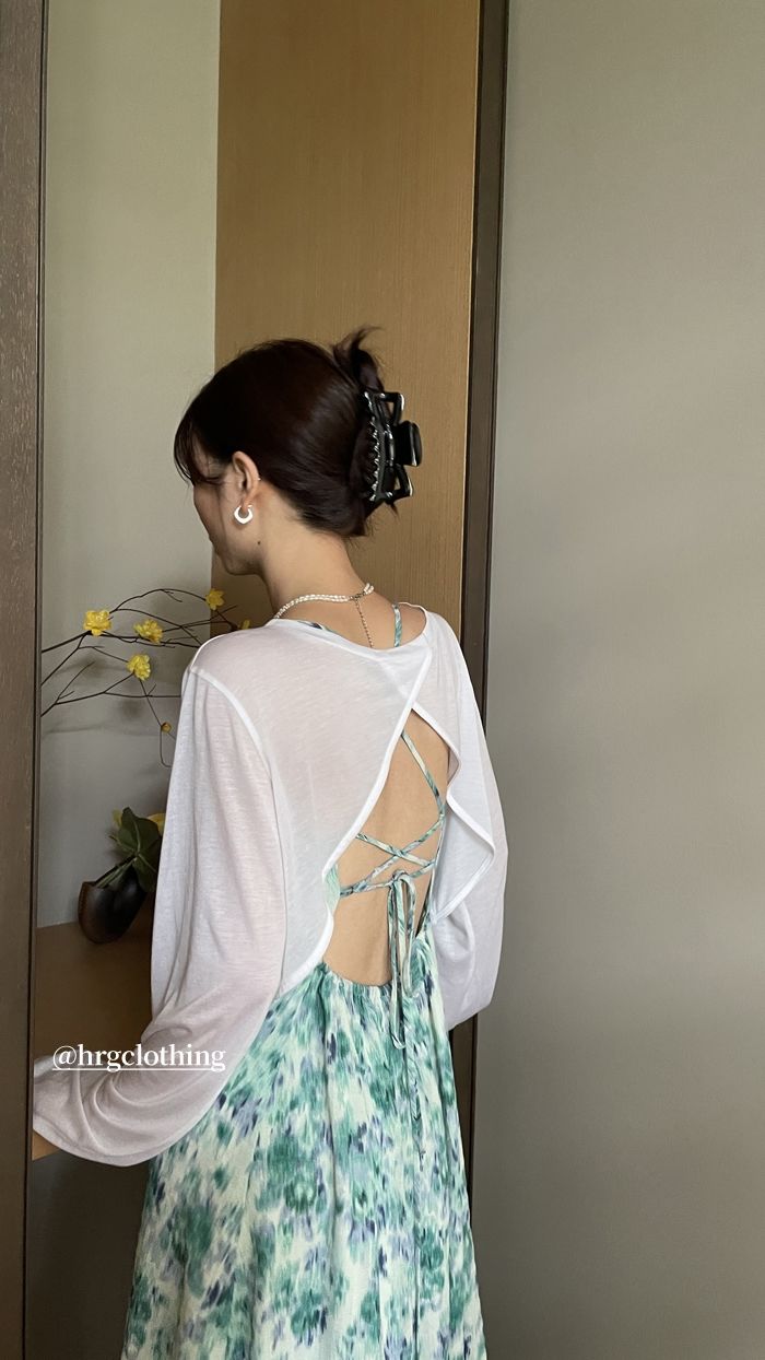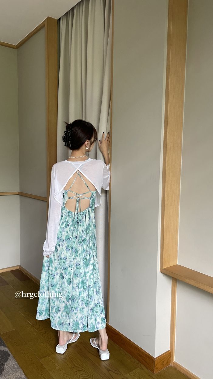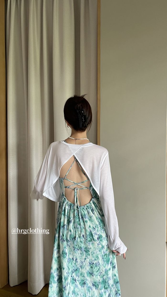 韩版长袖防晒罩衫上衣+性感露背绑带设计感小众吊带连衣裙两件套