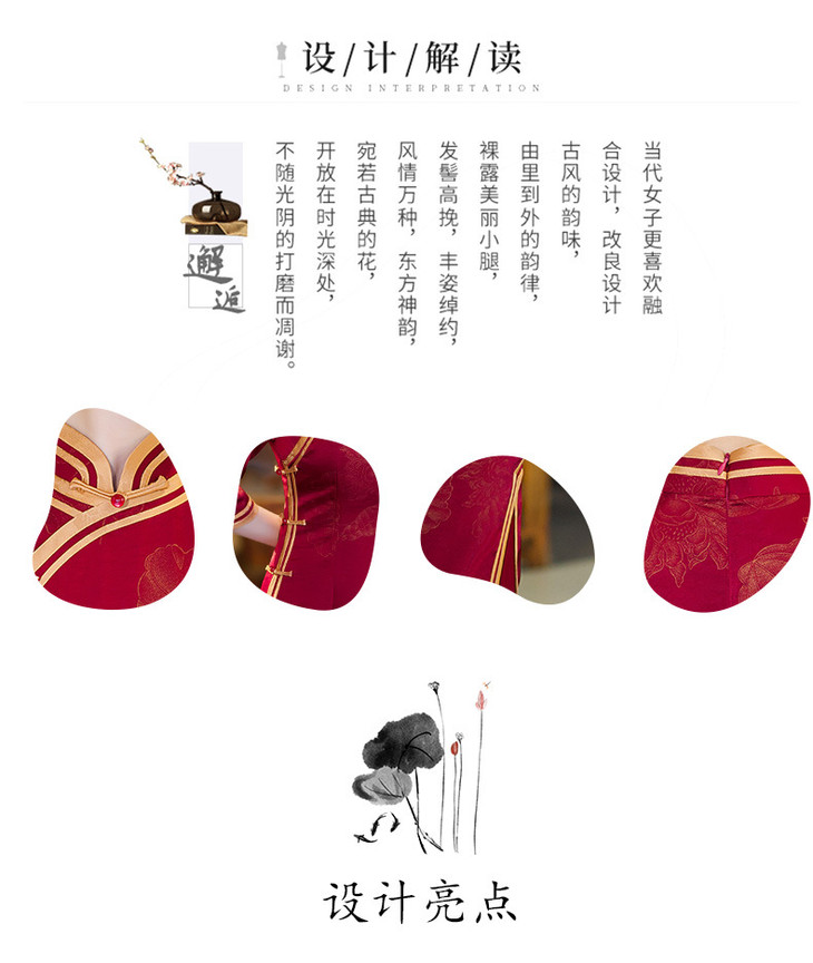 ZA2411天生贵气爆款复古重磅真丝香云纱中长款双层旗袍