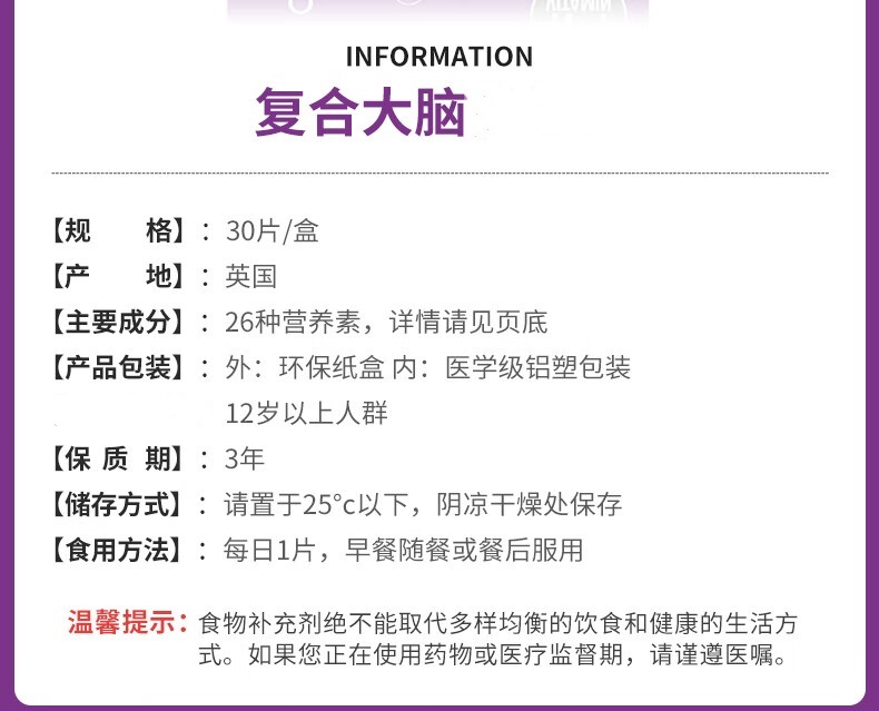 【跨境】 英国Vitabiotics 薇塔贝尔磷脂酰丝氨酸片 30粒/瓶 银杏叶精华英国进口