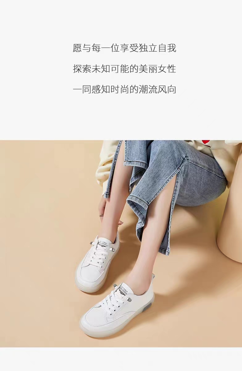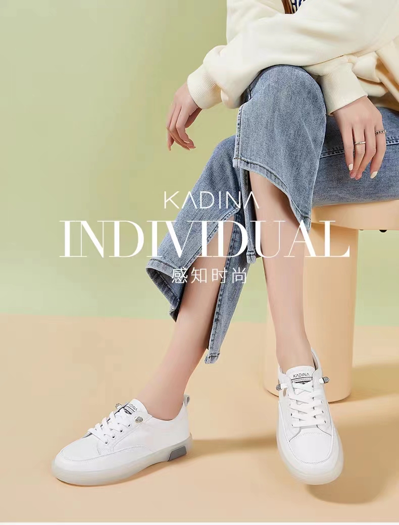 卡迪娜23年春季新款松紧带平跟板鞋深口女休闲鞋小白鞋KC232401