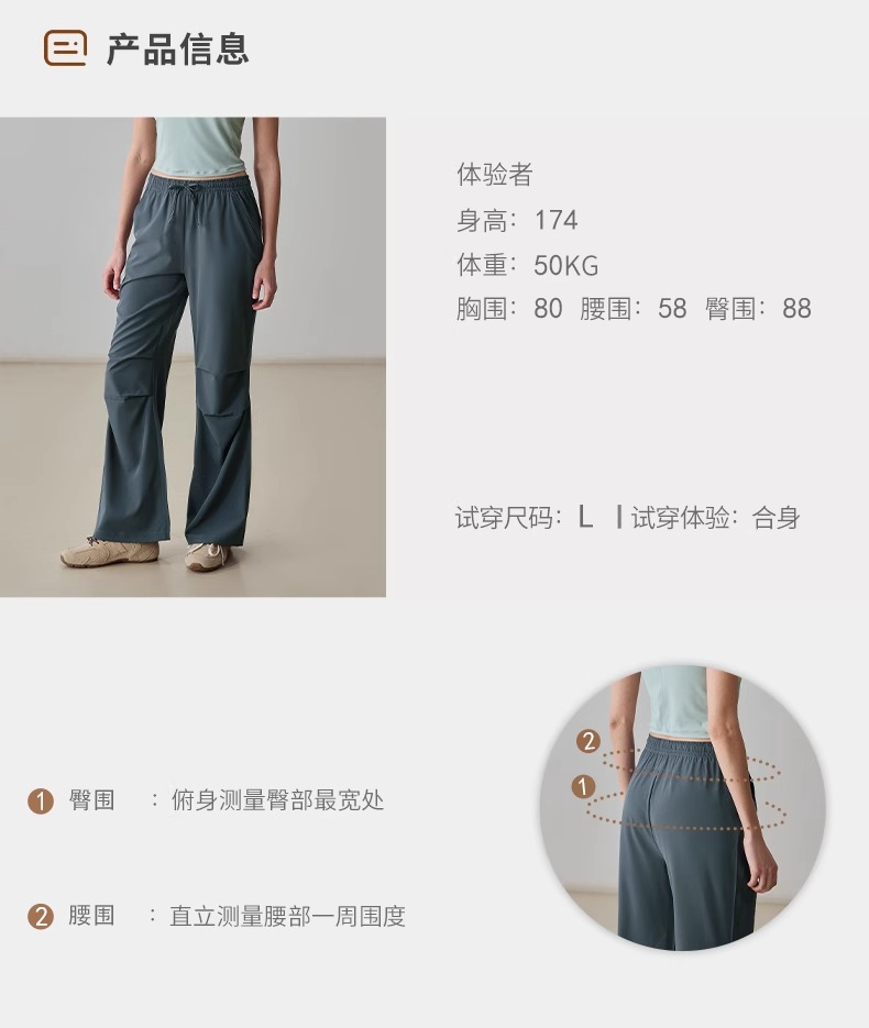 【3~5天发货】跃牌【美度空间】系列 美式复古健身工装裤阔腿显瘦褶皱抽绳伞兵裤ADCK52034