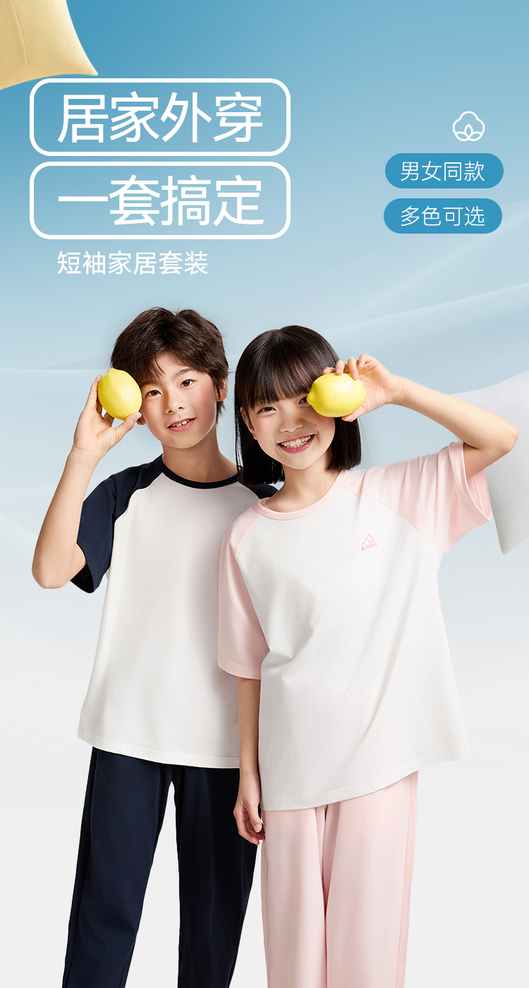 男女童短袖家居服套装春季新款安奈儿童装小程序专享JM521059