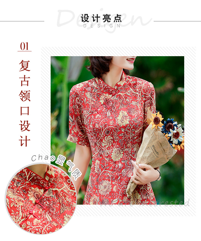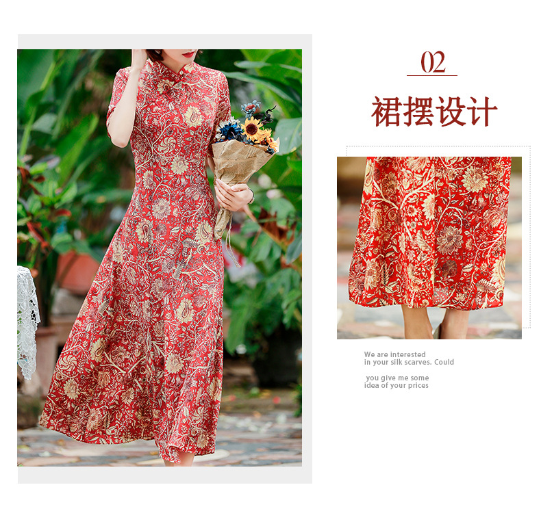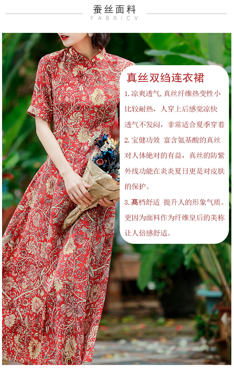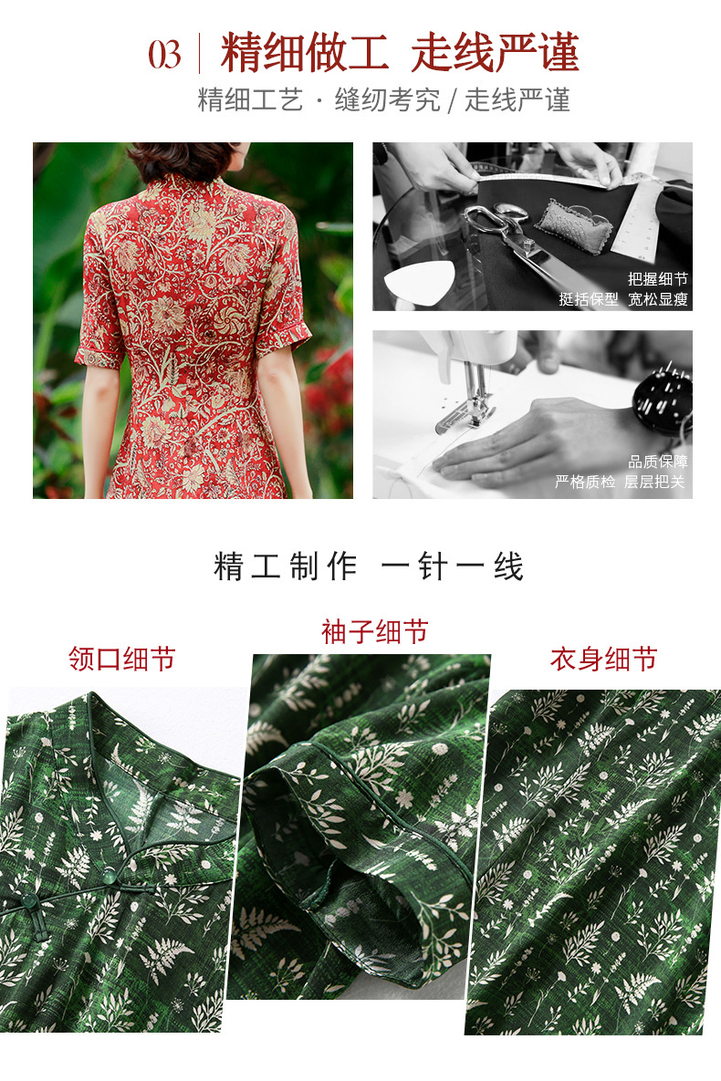 NYT-20010-2新款中国风复古盘扣立领纯桑蚕丝连衣裙