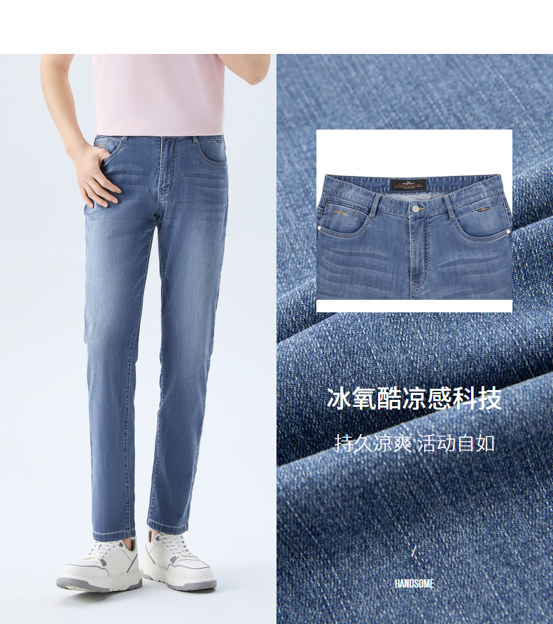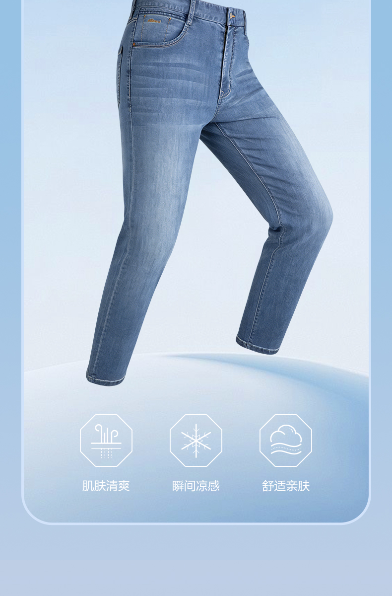 【瞬间凉感】柒牌男装2026春夏高弹耐磨含莱赛尔商务休闲牛仔长裤 130H70770