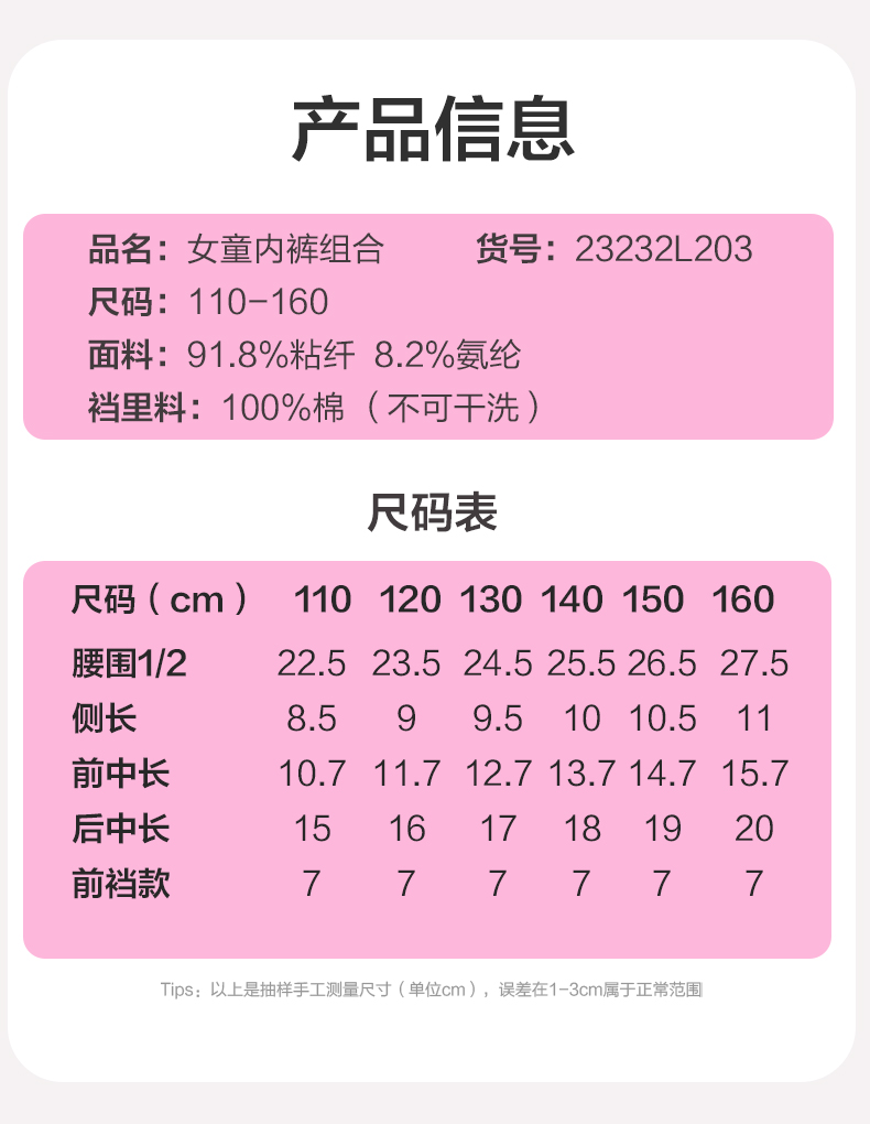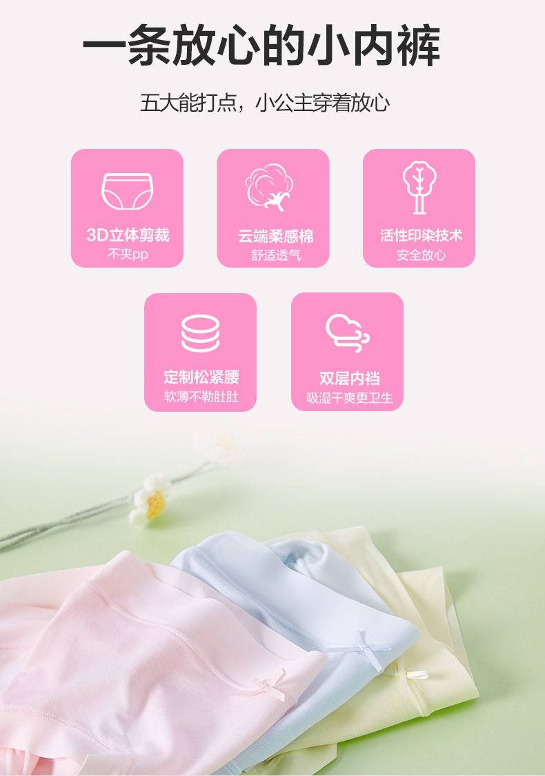 笛莎童装女童小内裤2023夏季新款女孩可爱三角内裤3条组合装