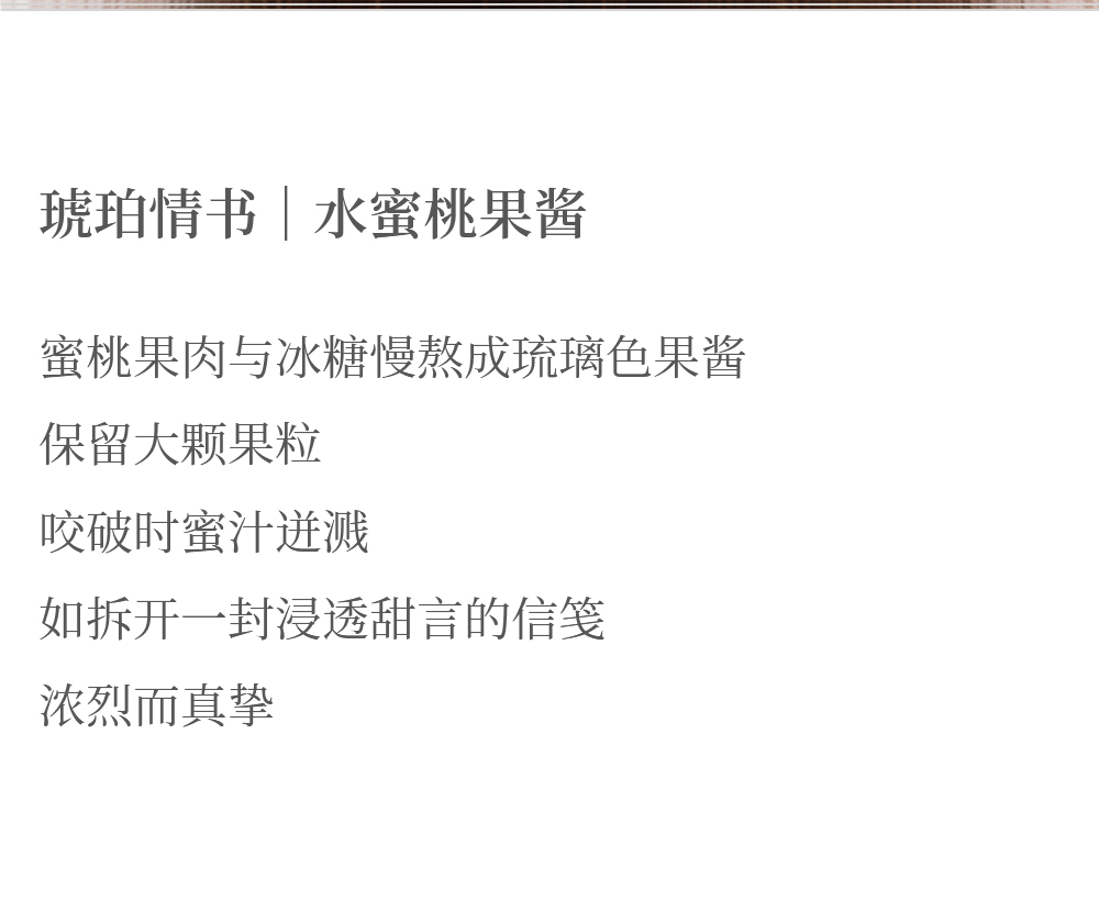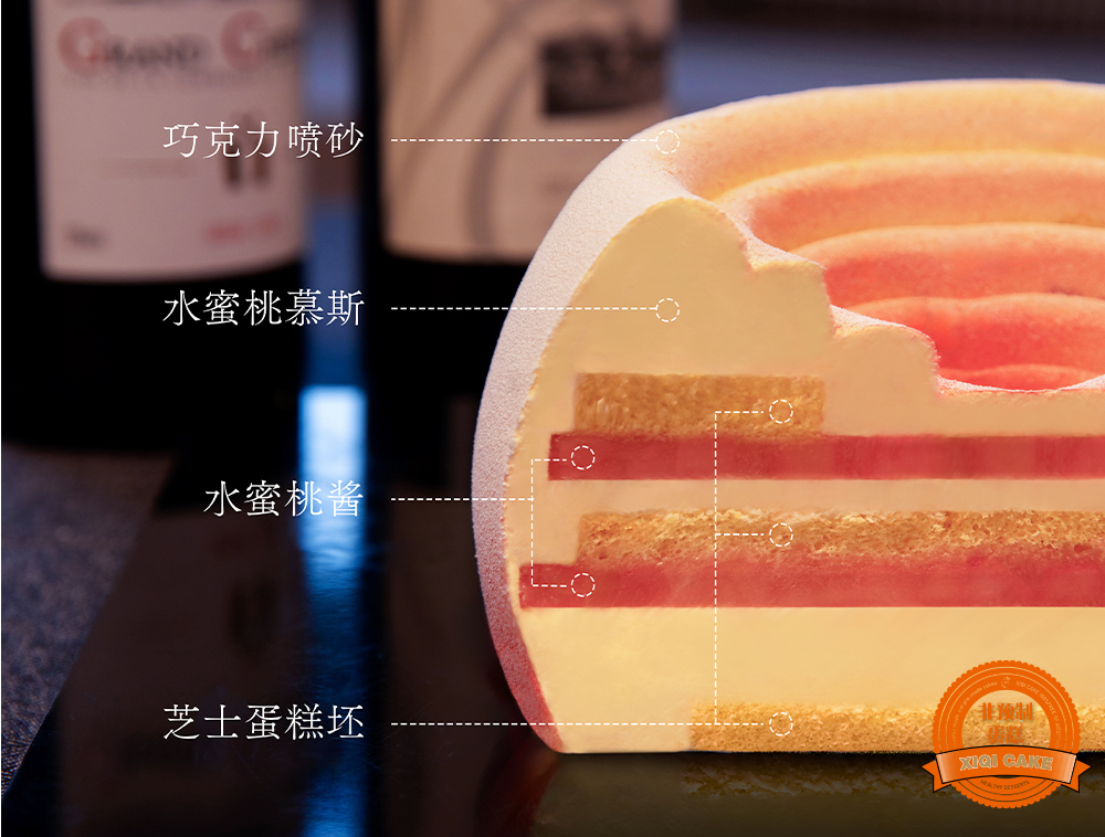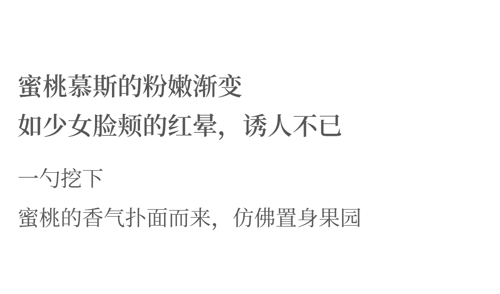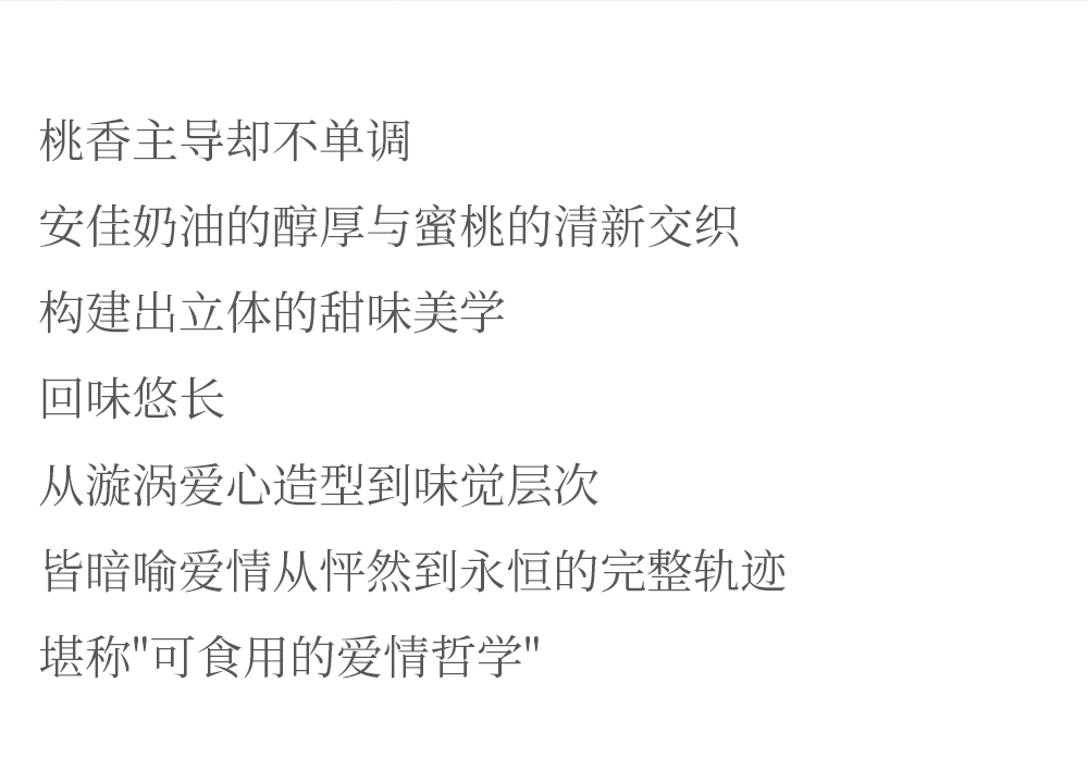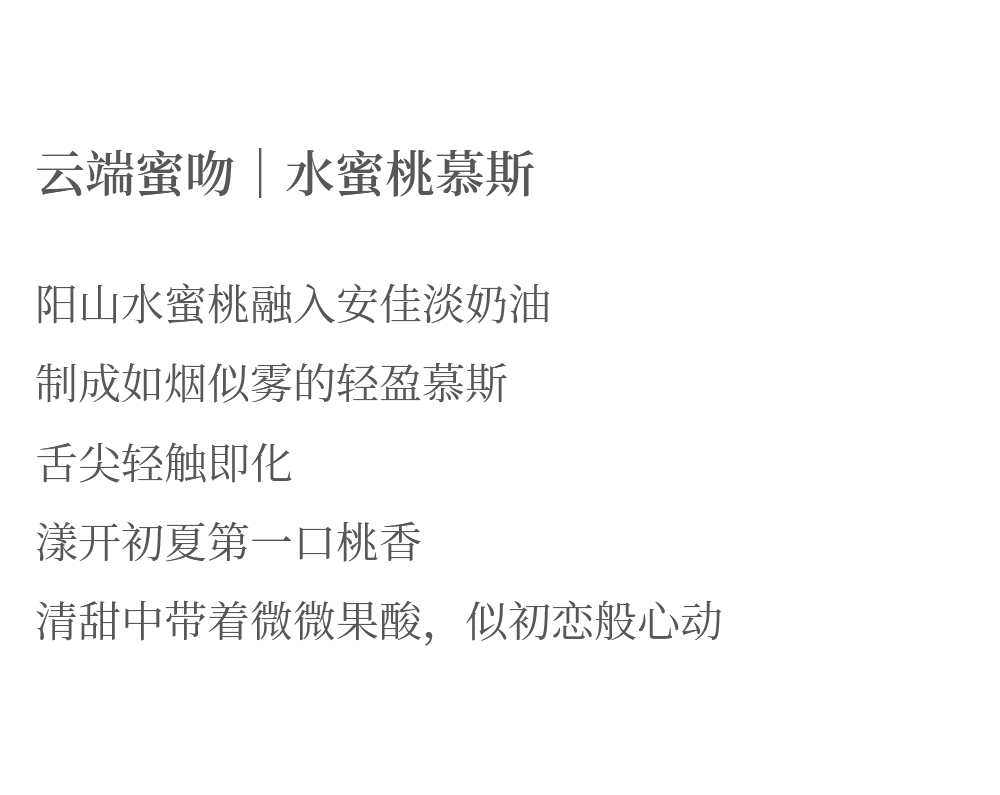 “慕斯如云,桃酱似蜜,一口下去,味蕾被宠坏。”