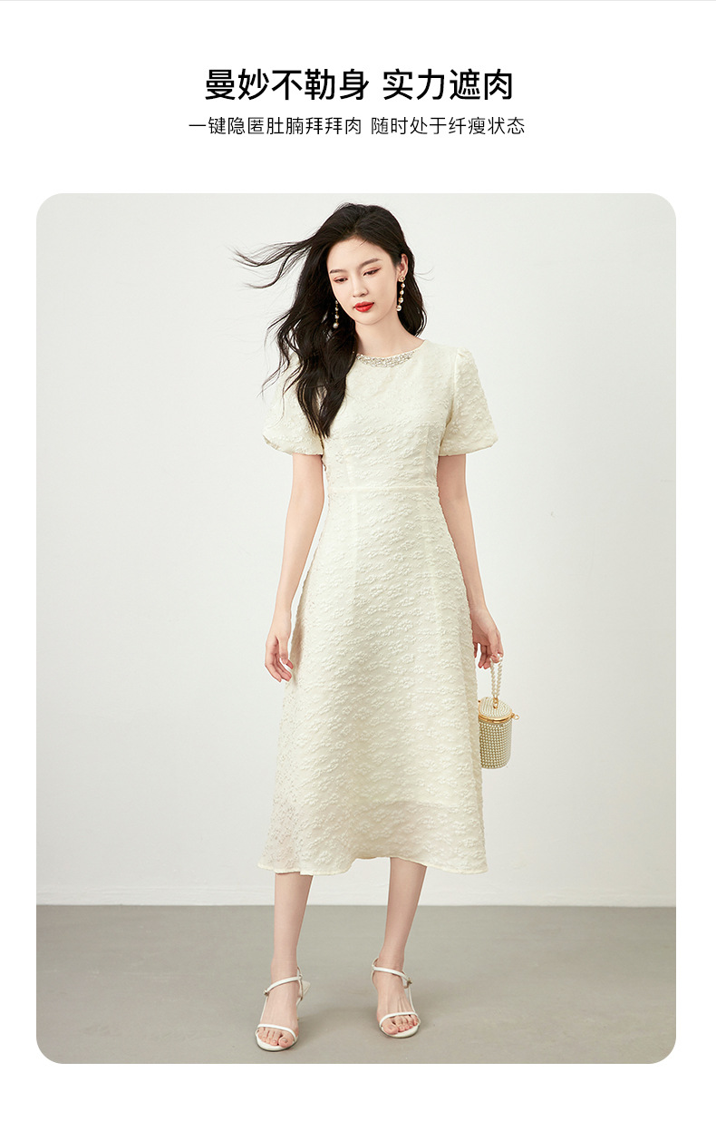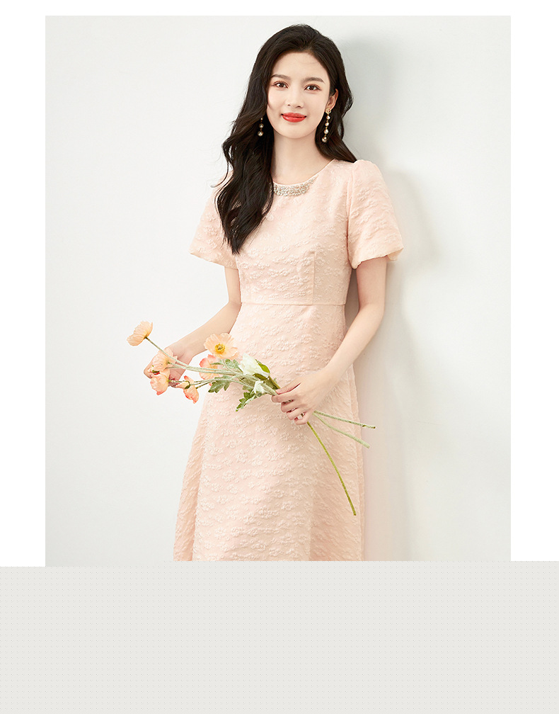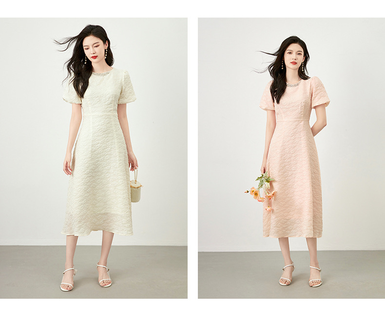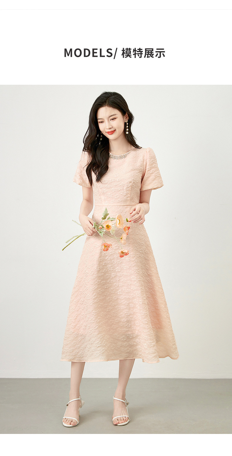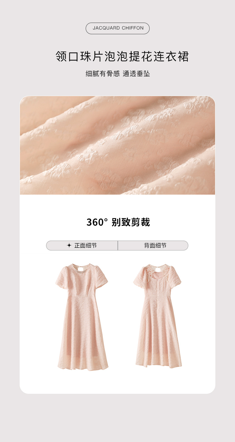 法式浪漫轻奢精致时髦,收腰钉钻短袖提花连衣裙WLZD- 2415101