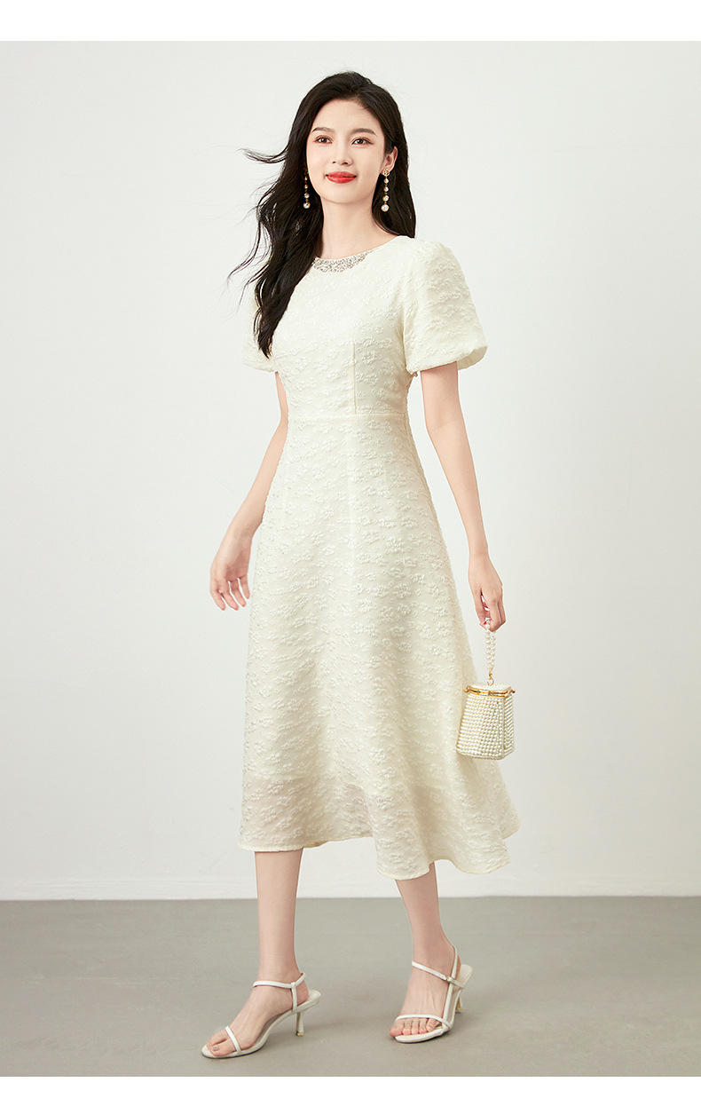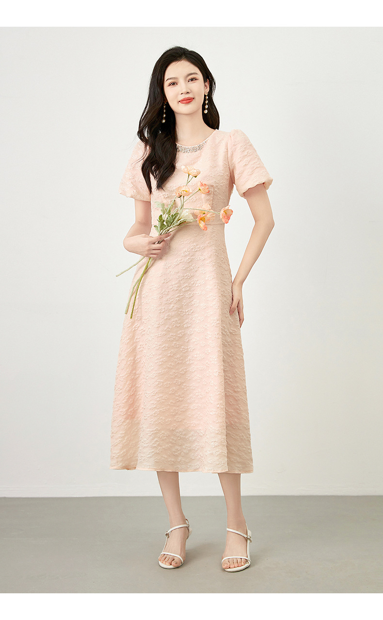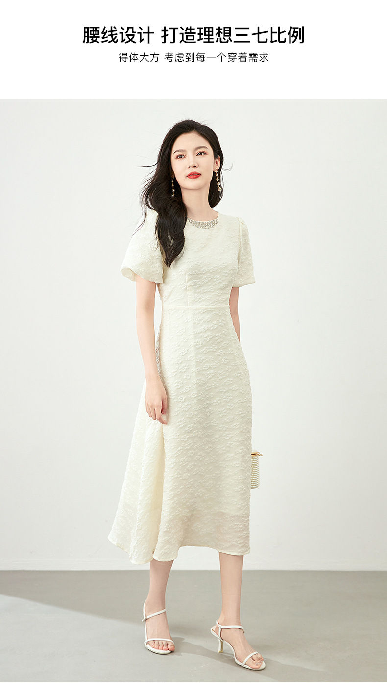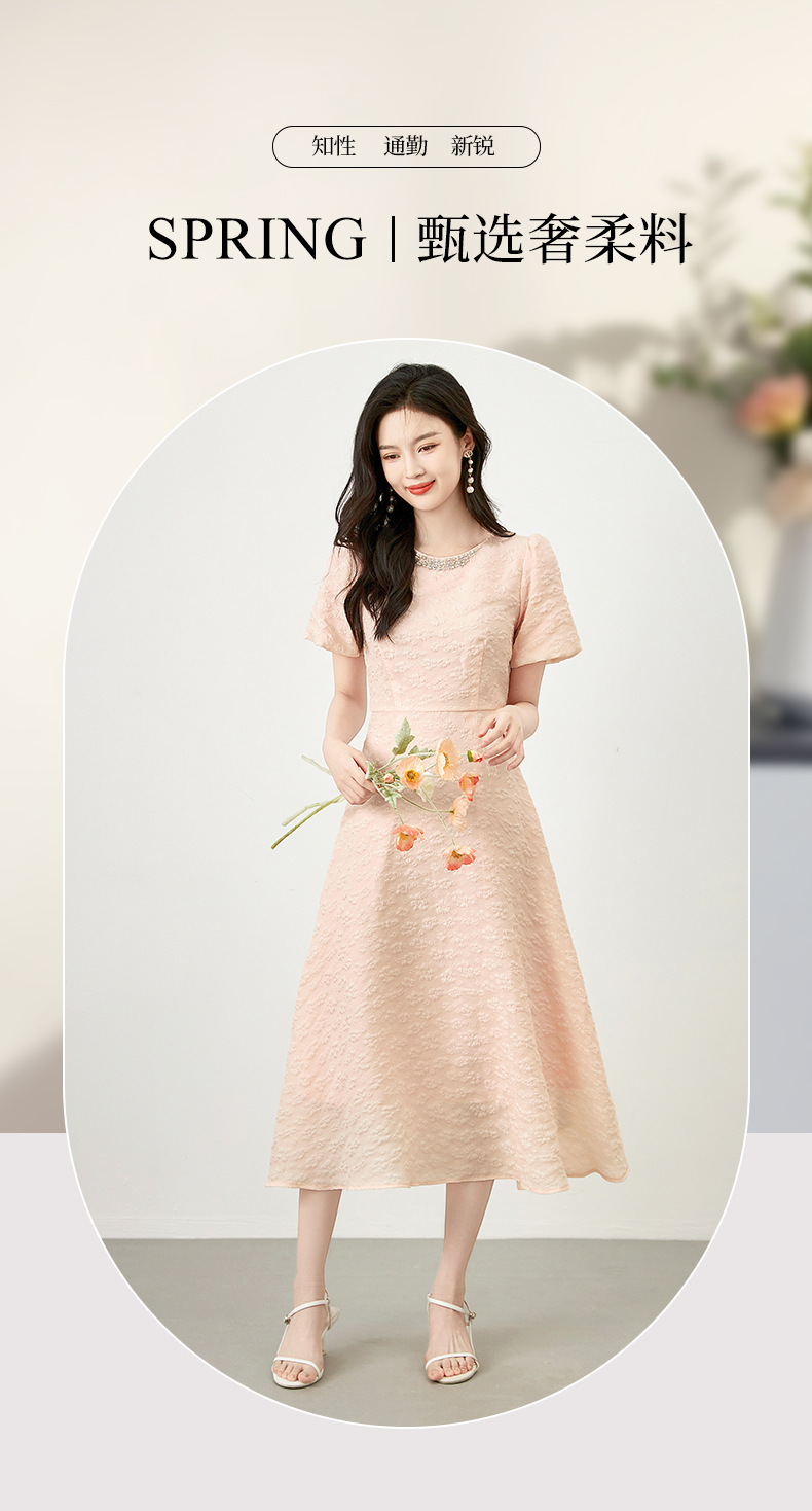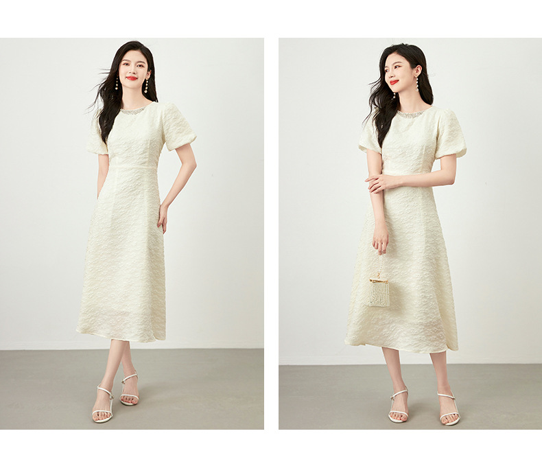 法式浪漫轻奢精致时髦,收腰钉钻短袖提花连衣裙WLZD- 2415101