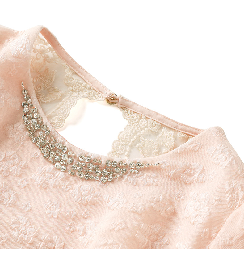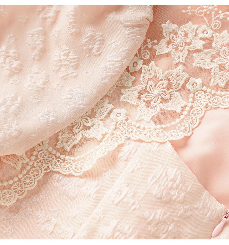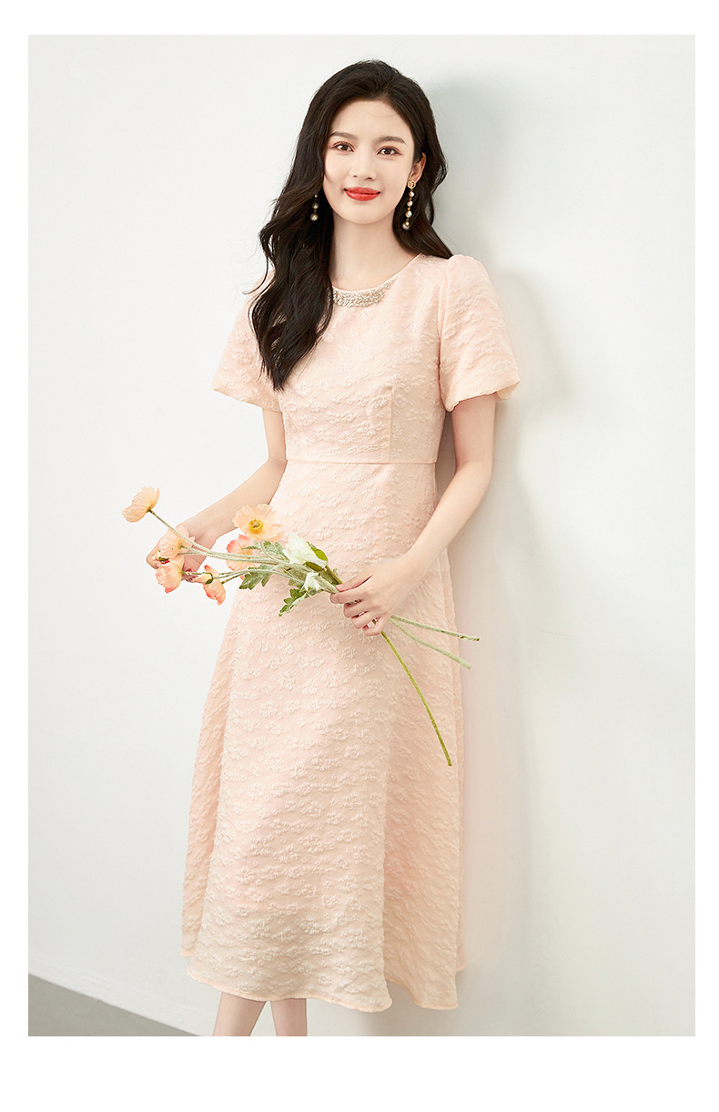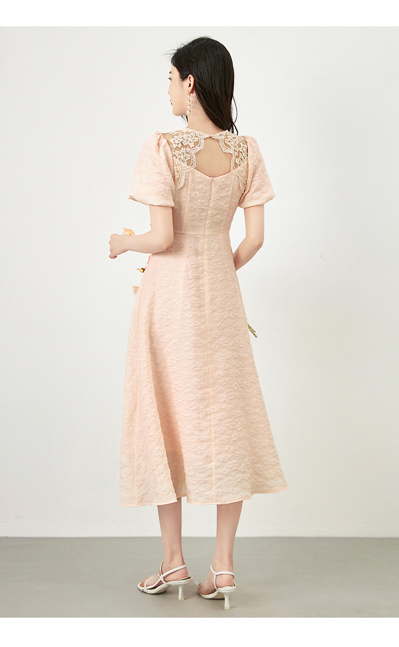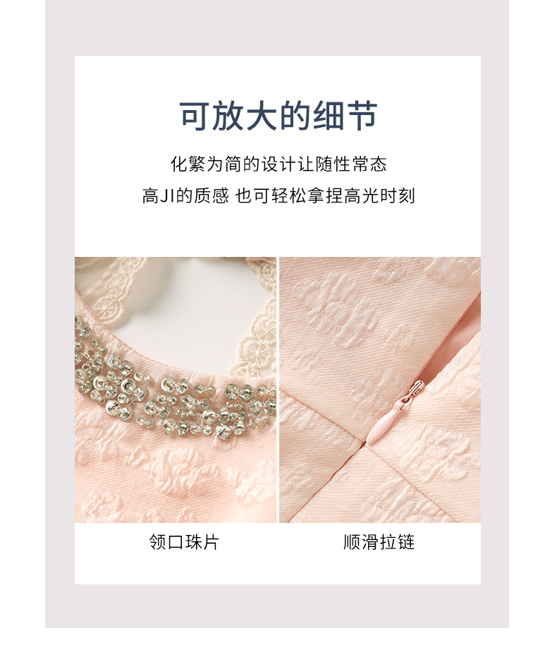 法式浪漫轻奢精致时髦,收腰钉钻短袖提花连衣裙WLZD- 2415101