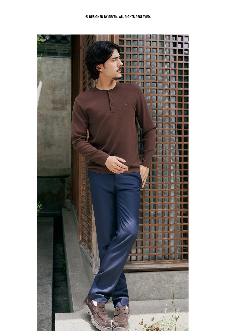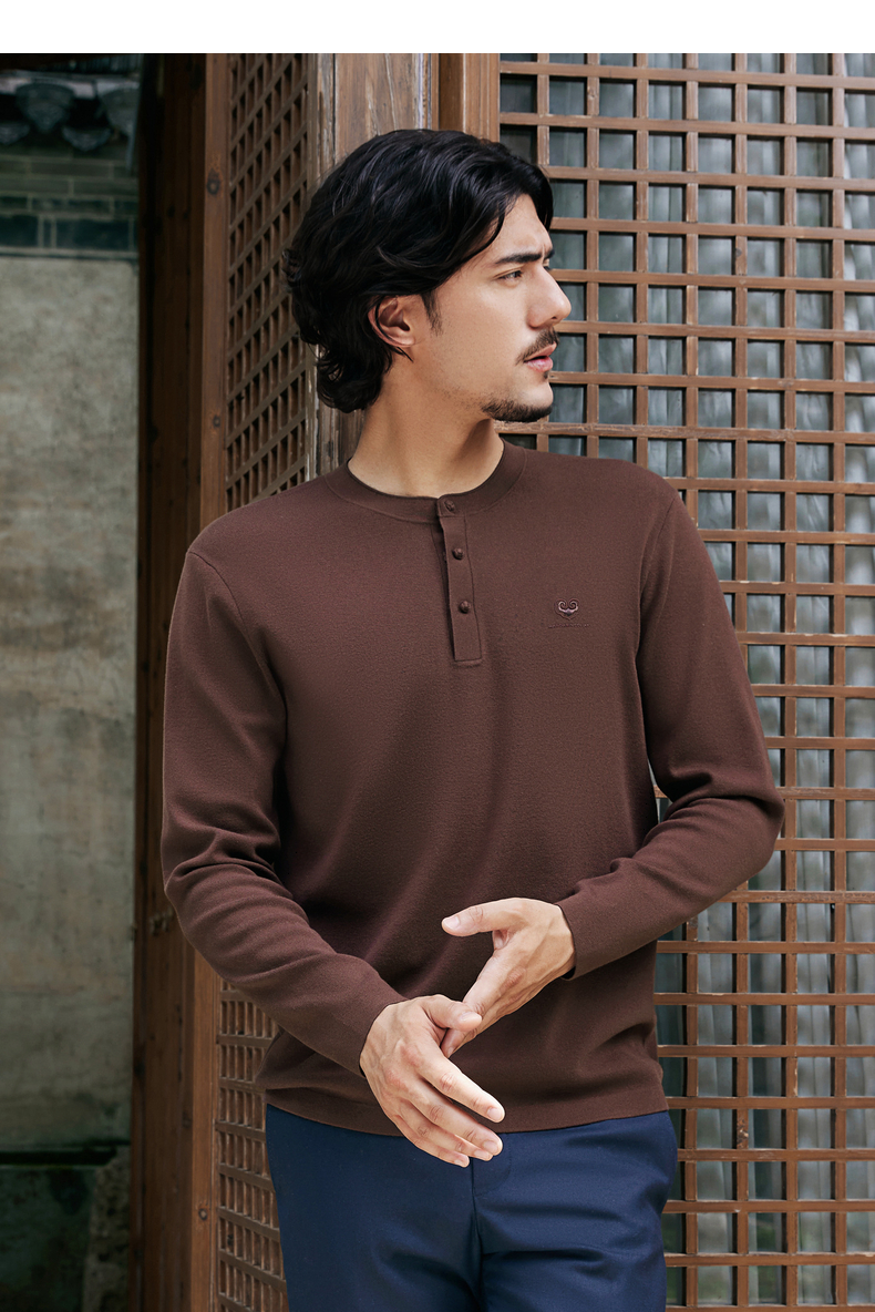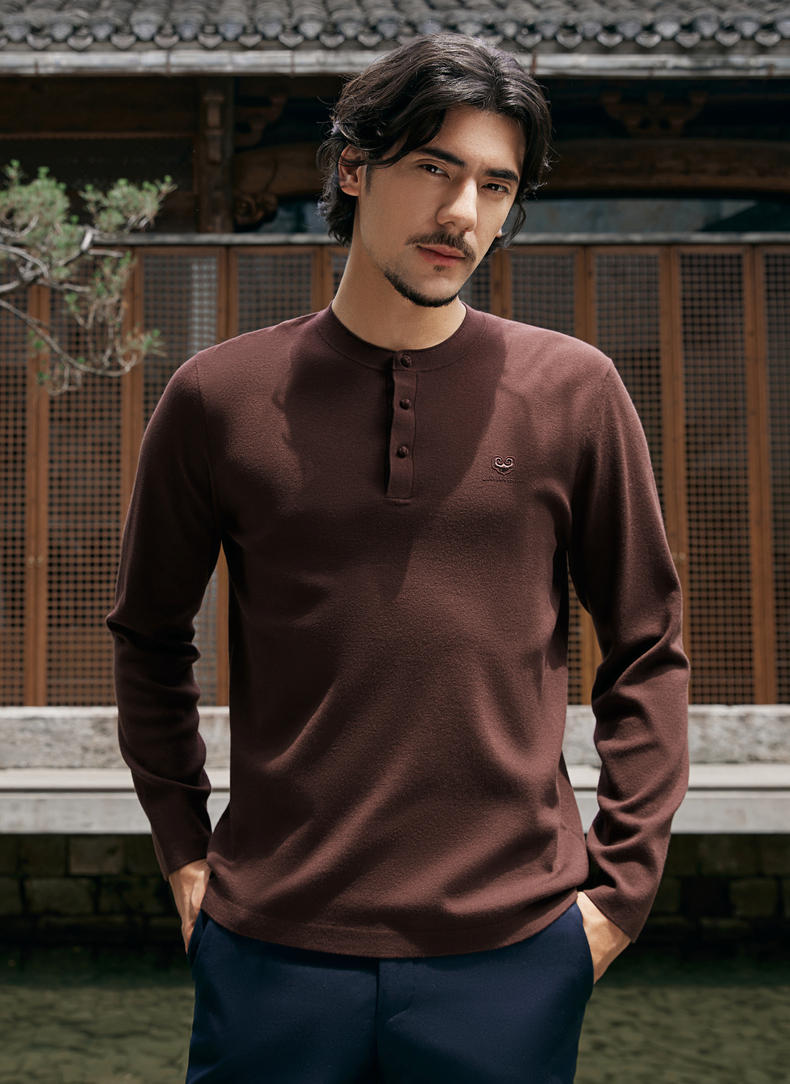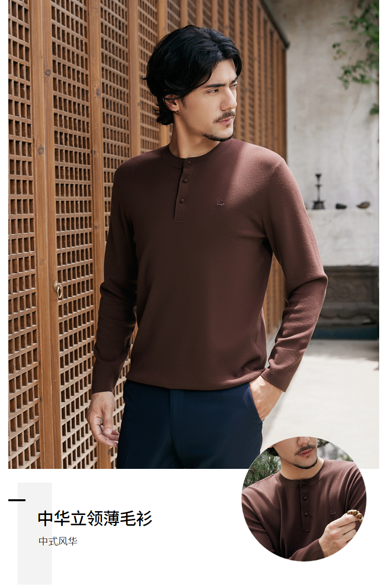 【国风新中式/含羊毛】柒牌中华立领盘扣柔软2025秋季套头薄毛衫