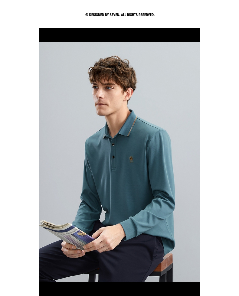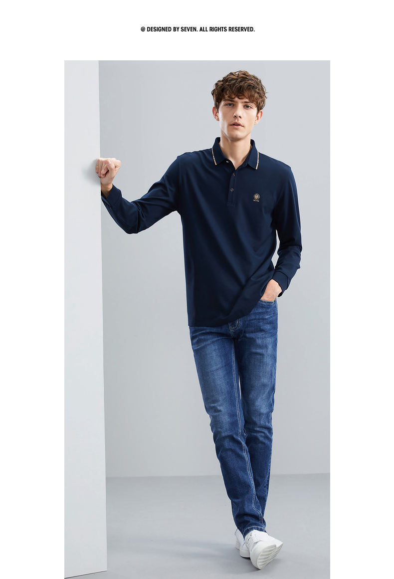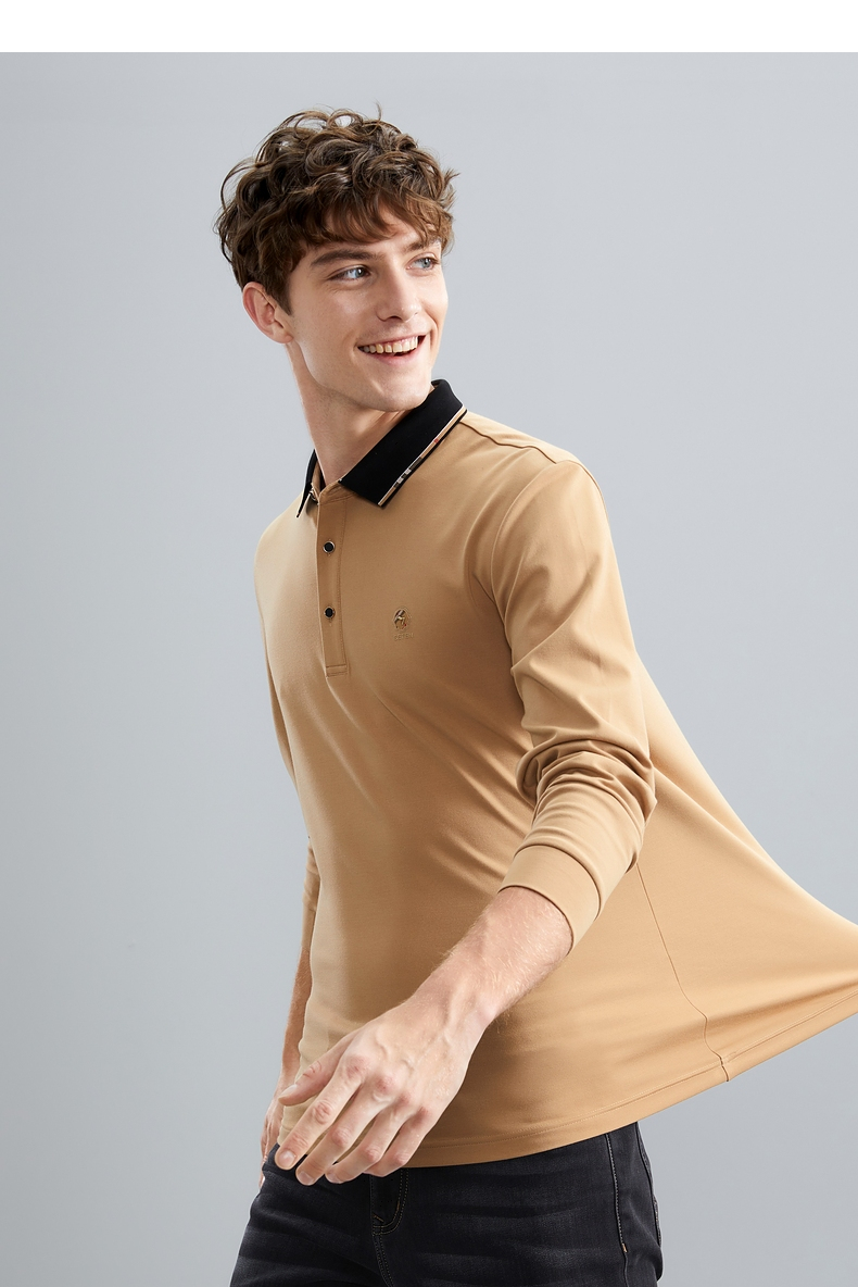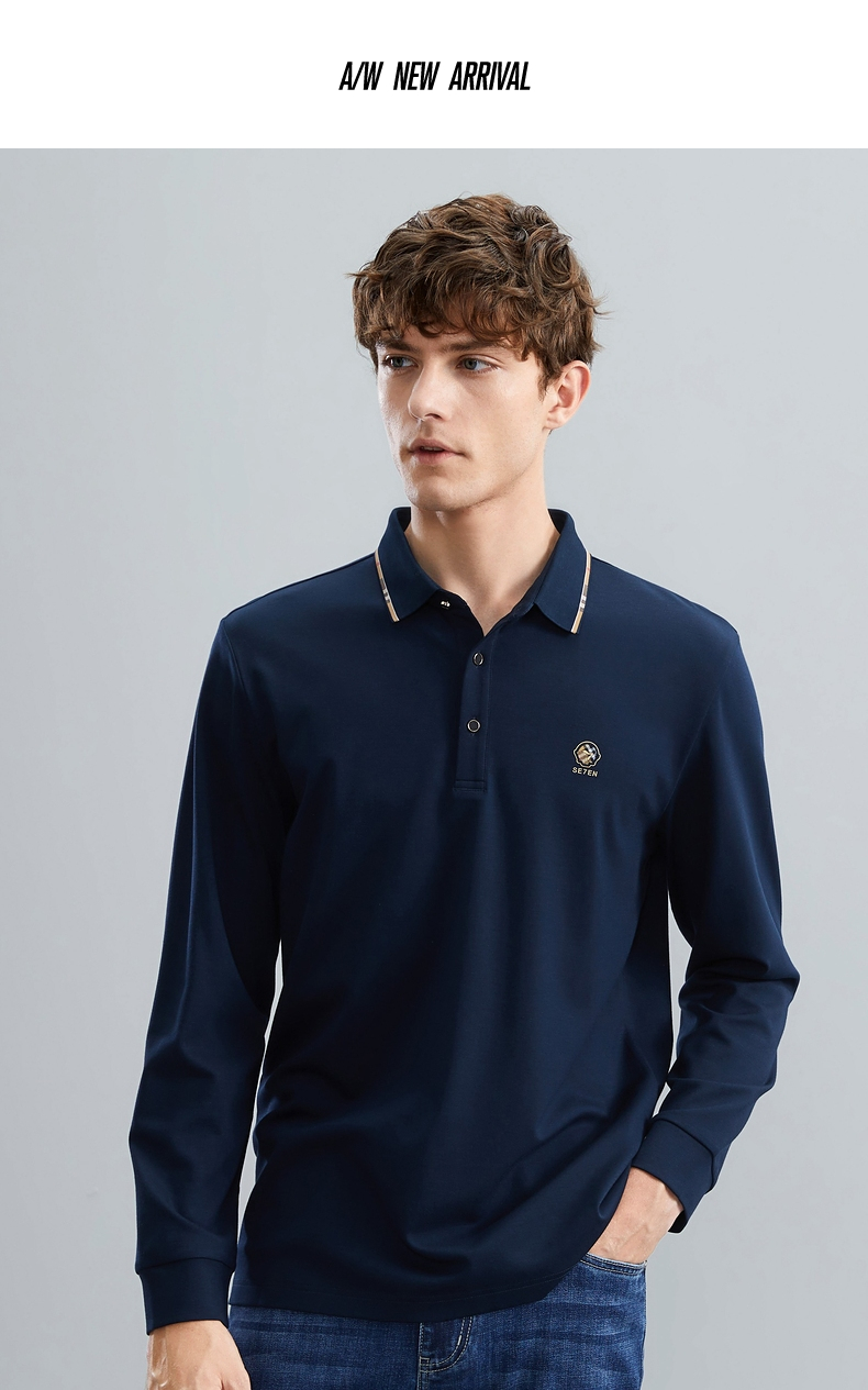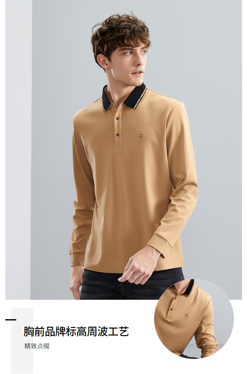 【高弹针织】柒牌男士polo衫长袖秋冬新品时尚休闲翻领T恤衫 125T70050