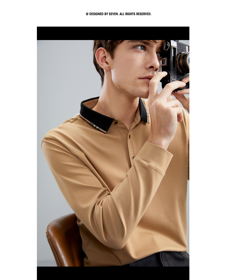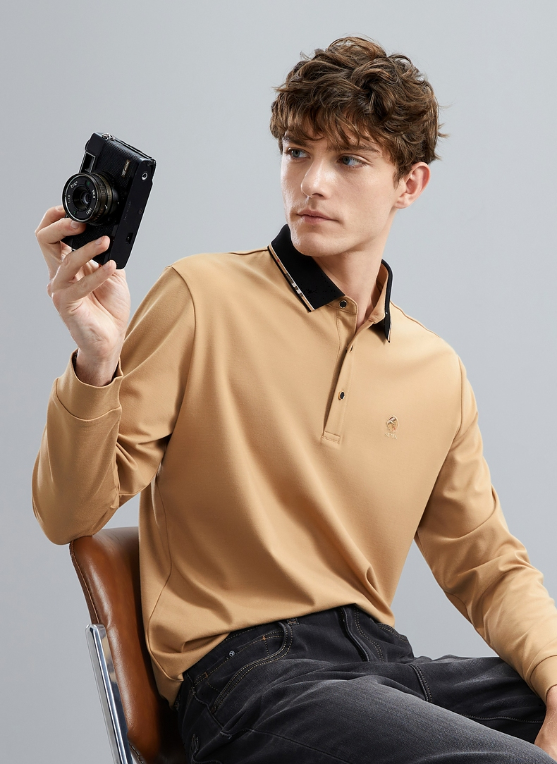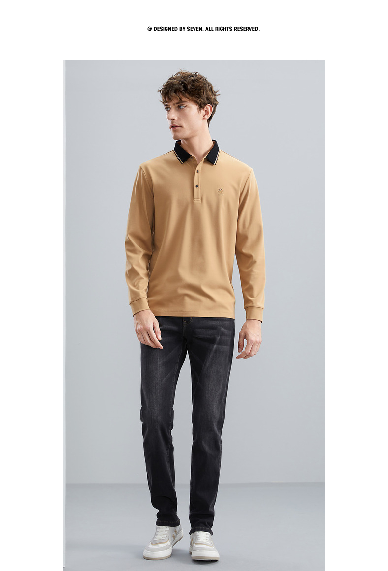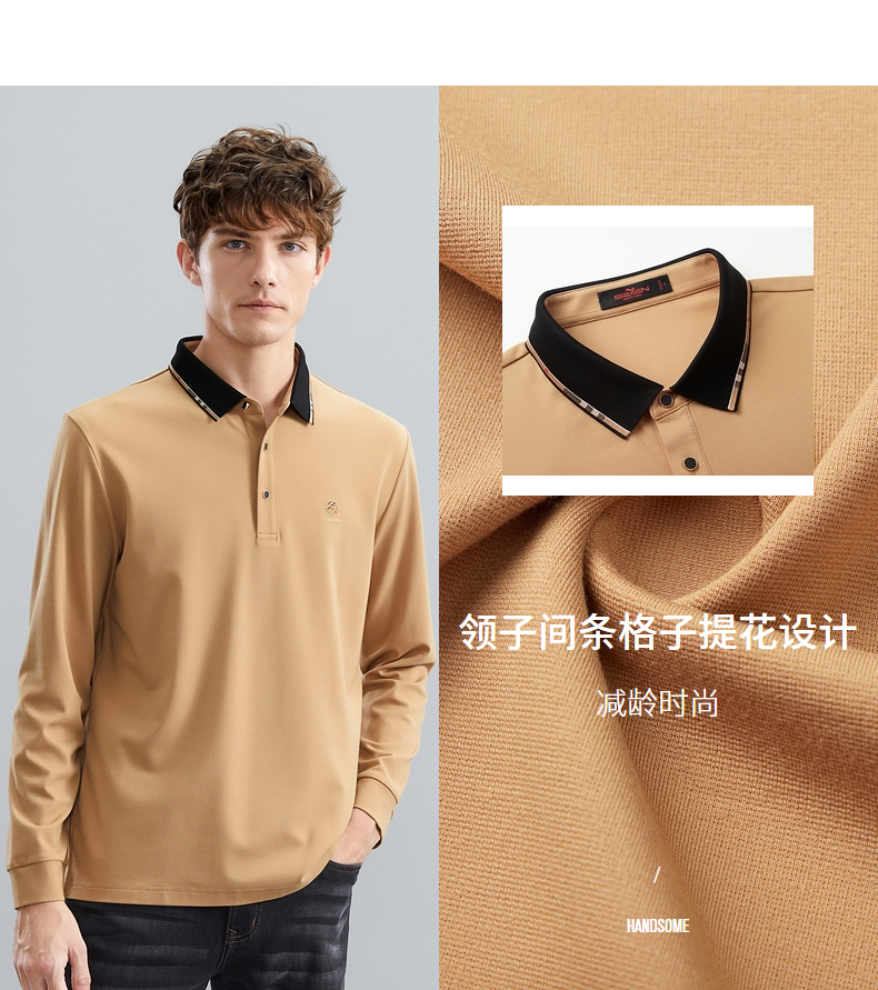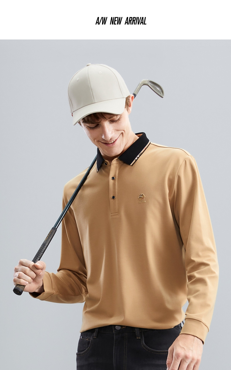 【高弹针织】柒牌男士polo衫长袖秋冬新品时尚休闲翻领T恤衫 125T70050