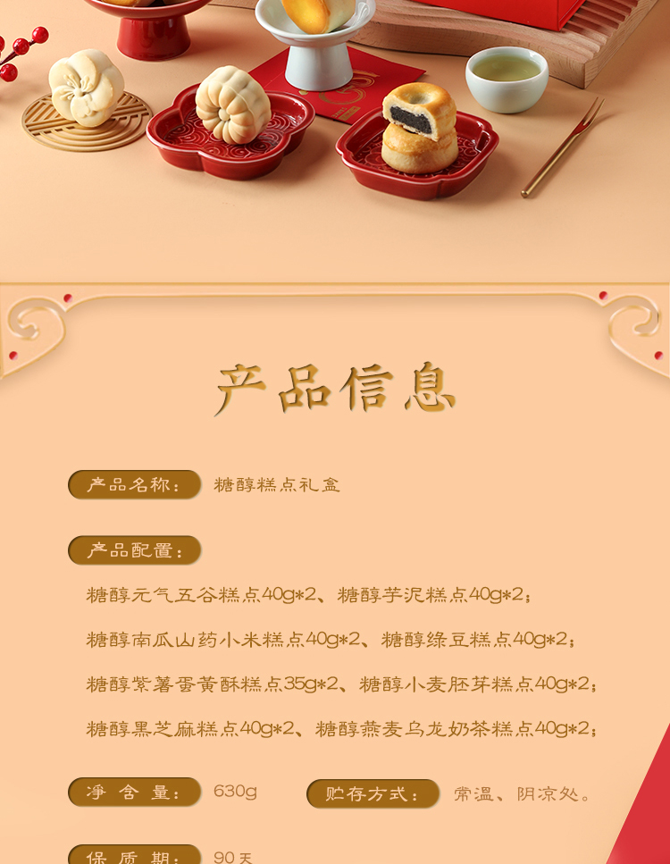 御茶膳房新年过年年货礼盒装送礼糕点心送长辈走亲戚高档春节礼品 糖醇糕点礼盒