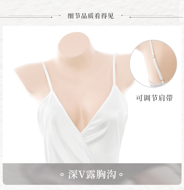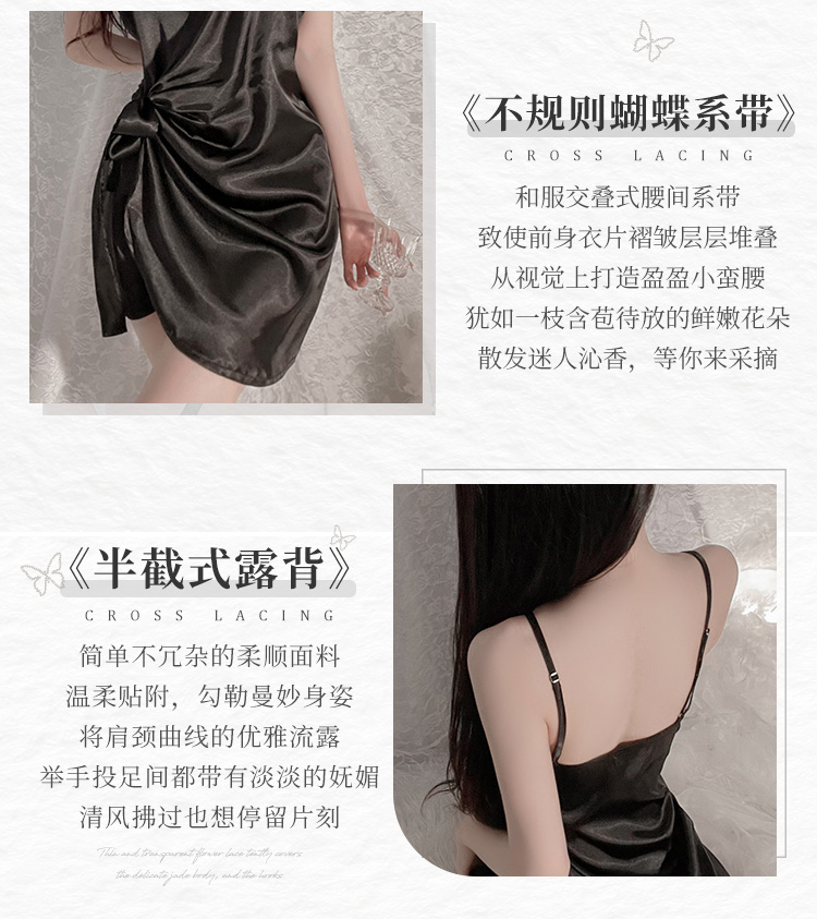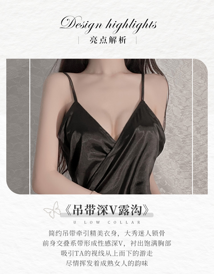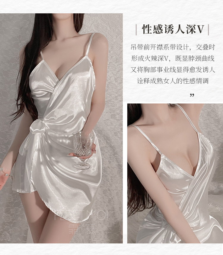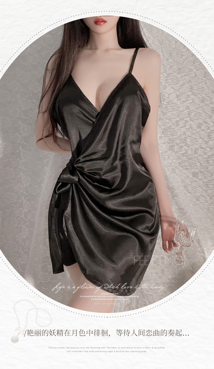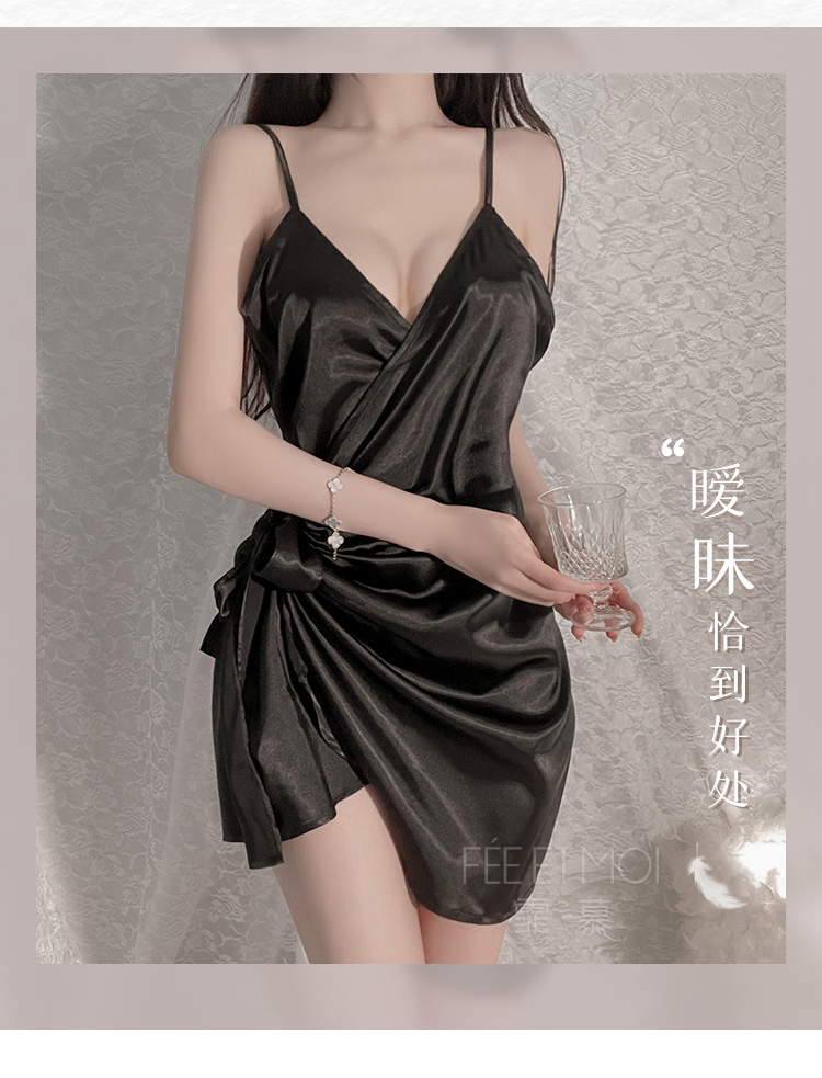 霏慕(Fee et moi)情趣睡衣性感私房睡裙居家吊带深V前开襟系带睡裙6640 黑白【 吊带睡裙 】 均码