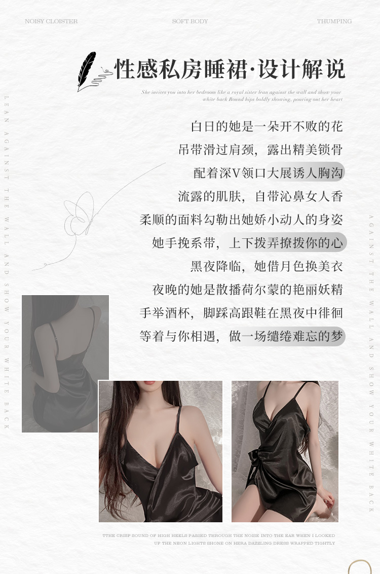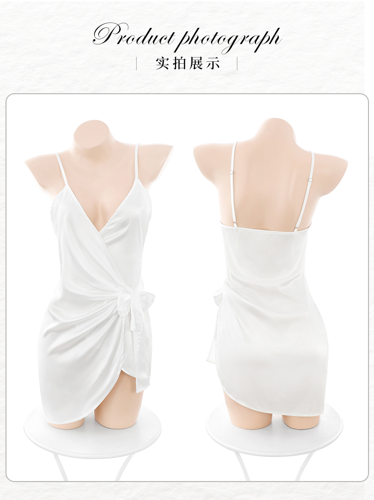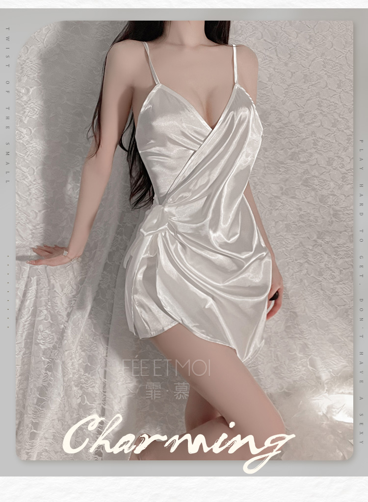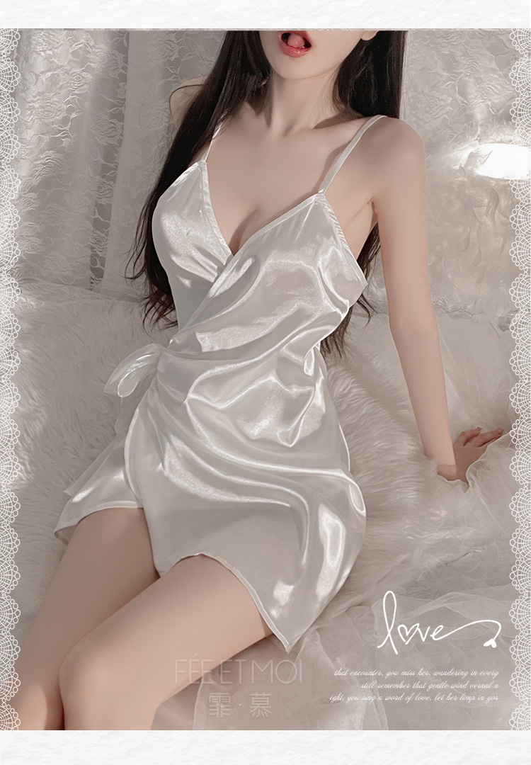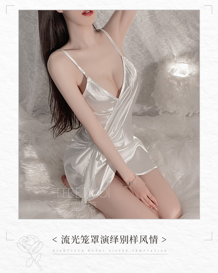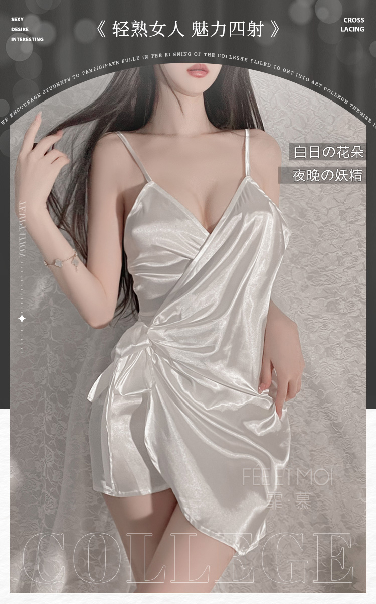 霏慕(Fee et moi)情趣睡衣性感私房睡裙居家吊带深V前开襟系带睡裙6640 黑白【 吊带睡裙 】 均码