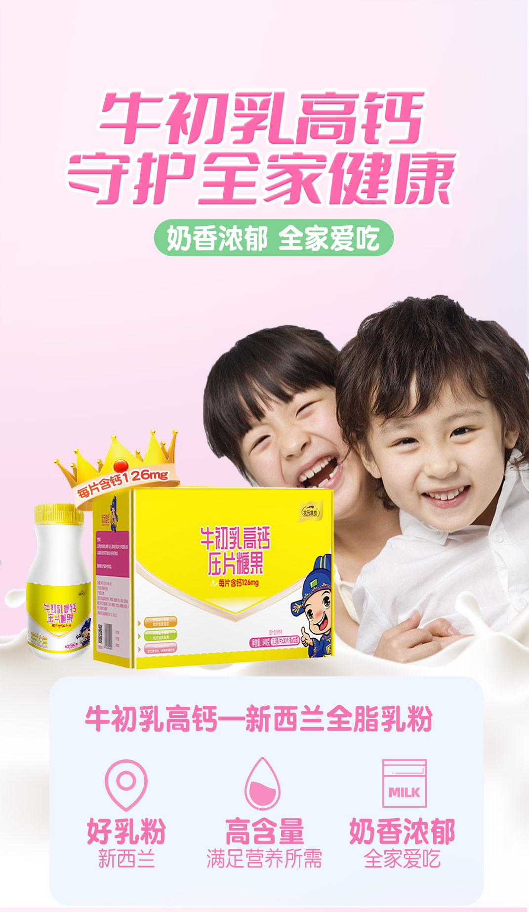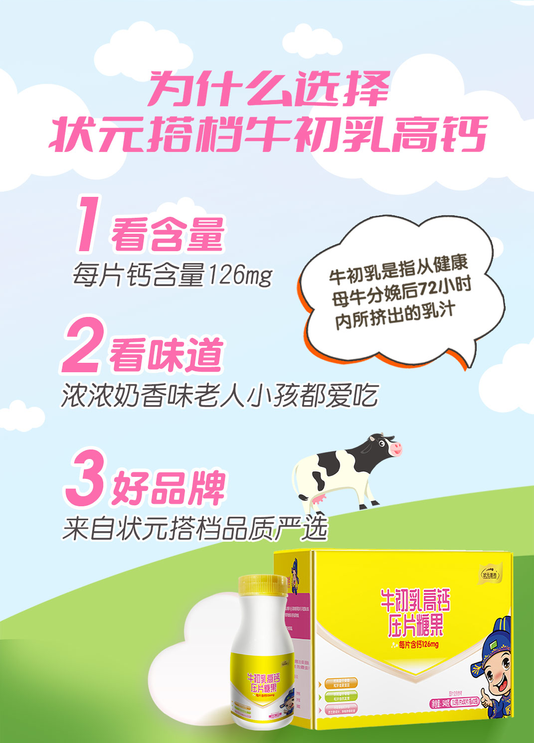 ⁵99元12瓶【老人孩子都能吃的钙片】牛初乳钙每片含钙126mg 每瓶30片,12瓶一大盒 【状元郎】YY05-QTT-ZY