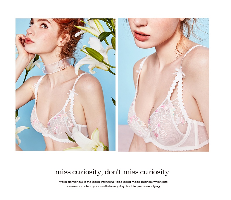 好奇蜜斯性感内衣女夏季超薄款上托文胸套装网纱蕾丝胸罩女性内裤奈尔