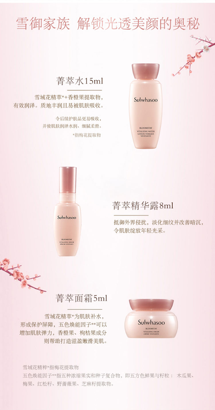 【爆款超低价预售 急单慎拍】雪花秀雪御活颜3件组旅行小样三件套 水精华面霜舒缓保湿提亮肌肤