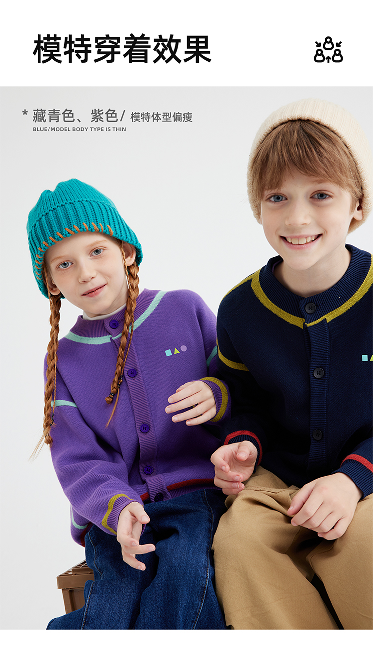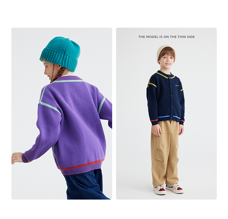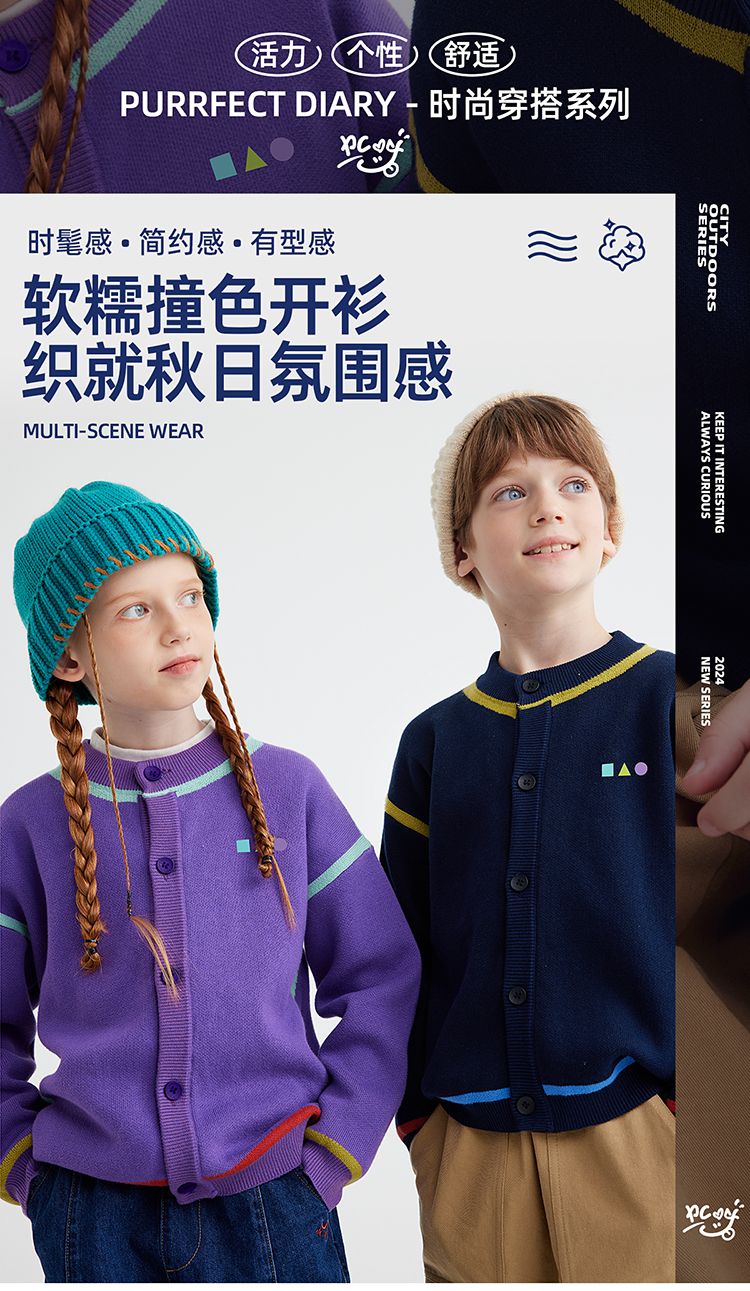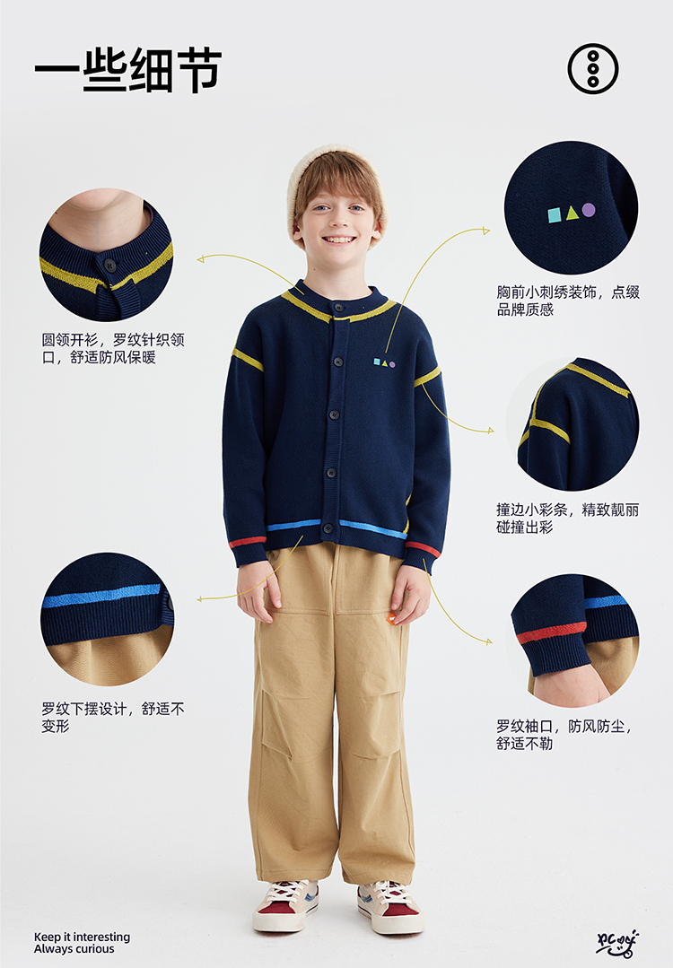 【高克重 柔软32s棉纱】儿童撞色刺绣毛衣开衫 PQMY2403