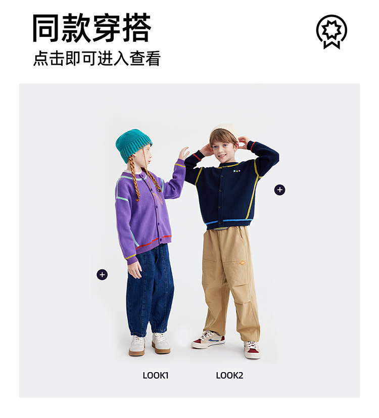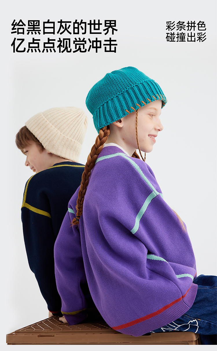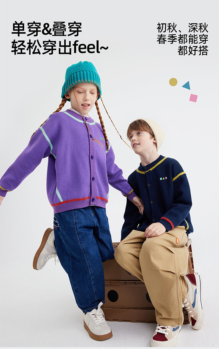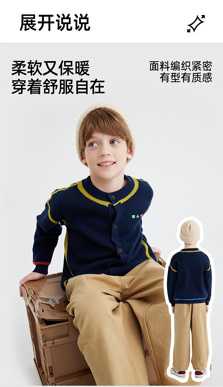 【高克重 柔软32s棉纱】儿童撞色刺绣毛衣开衫 PQMY2403