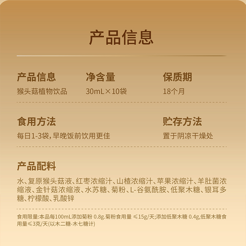 【产品名称】沛元猴头菇植物饮品30ml*10/盒