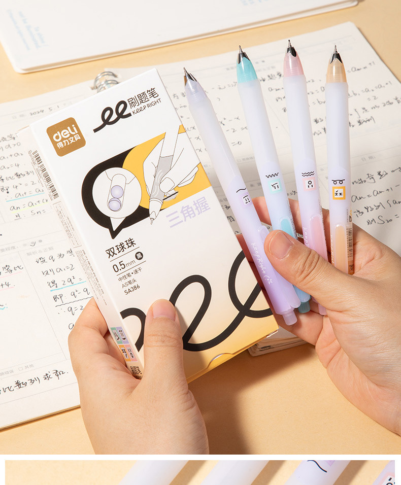 【速干油墨❗不易晕染,不脏手】得力按动中性笔0.5磨砂渐变三角高颜值黑笔轻奢高级感学生刷题笔。rg
