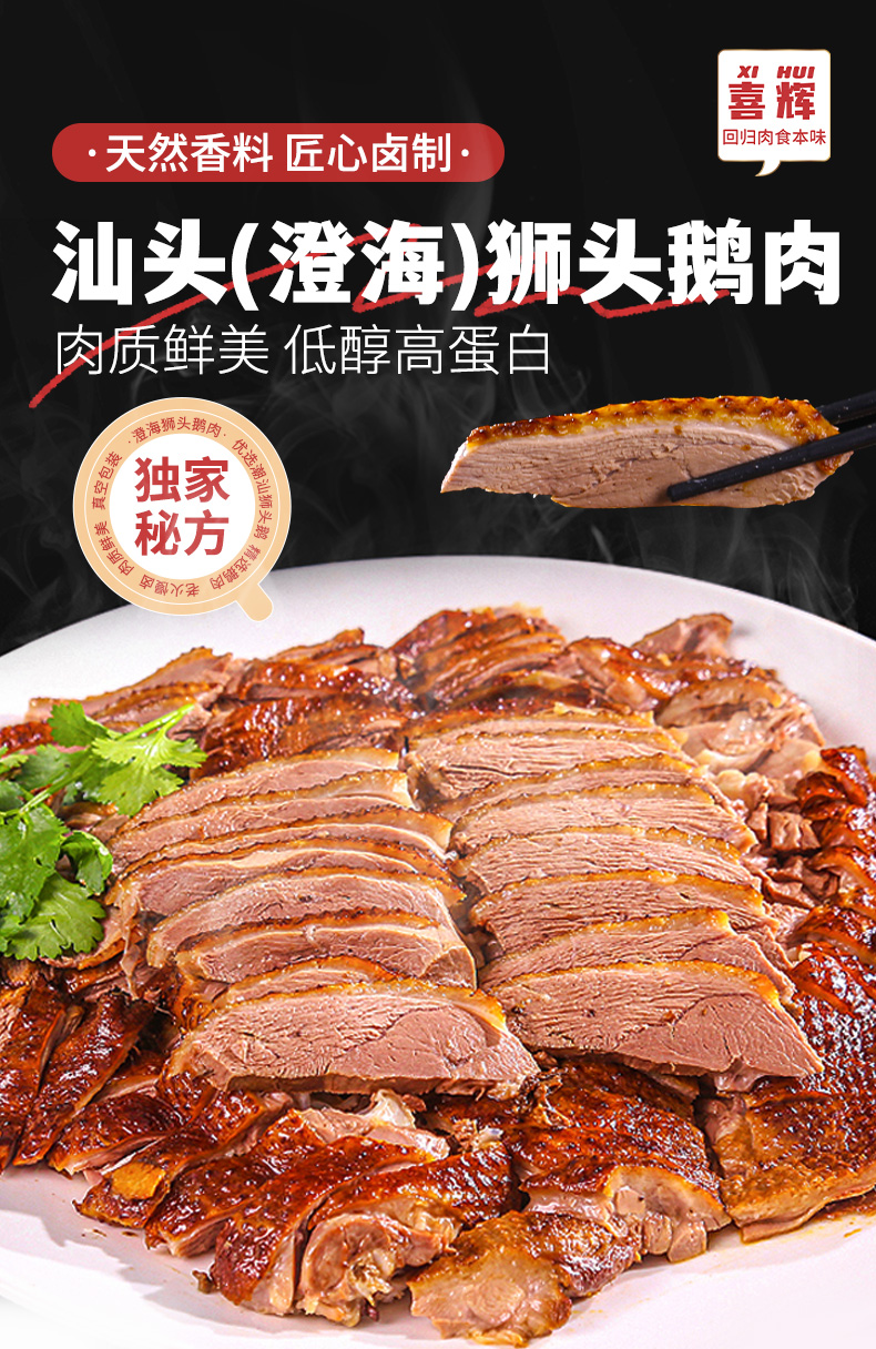 喜辉狮头鹅肉 广东汕头澄海卤鹅肉 正宗潮汕味道美食 口感丰富 卤香扑鼻 肉质鲜美 真空无菌包装 250g/盒