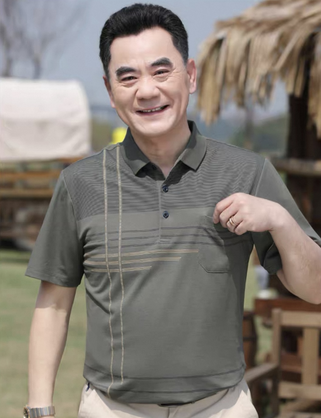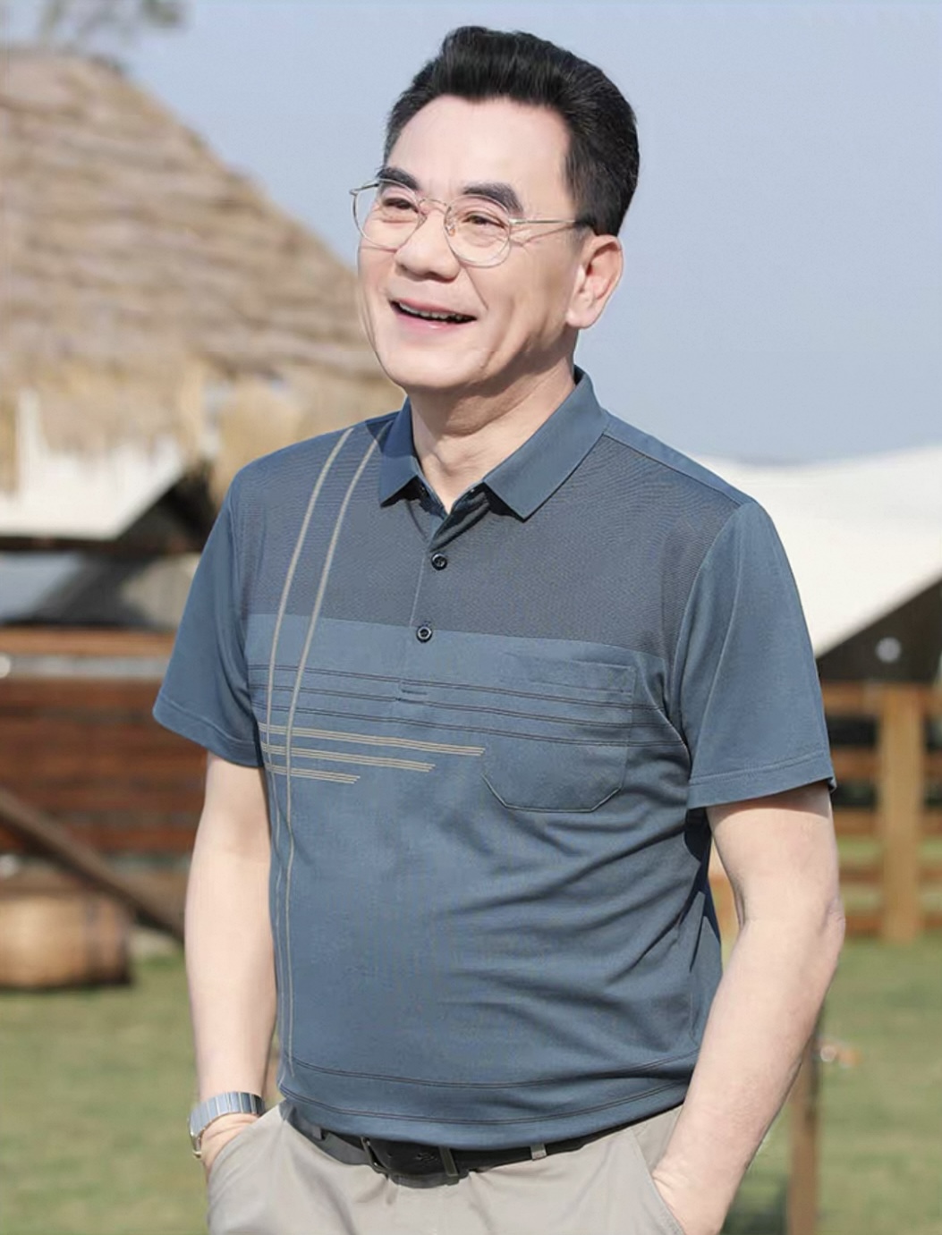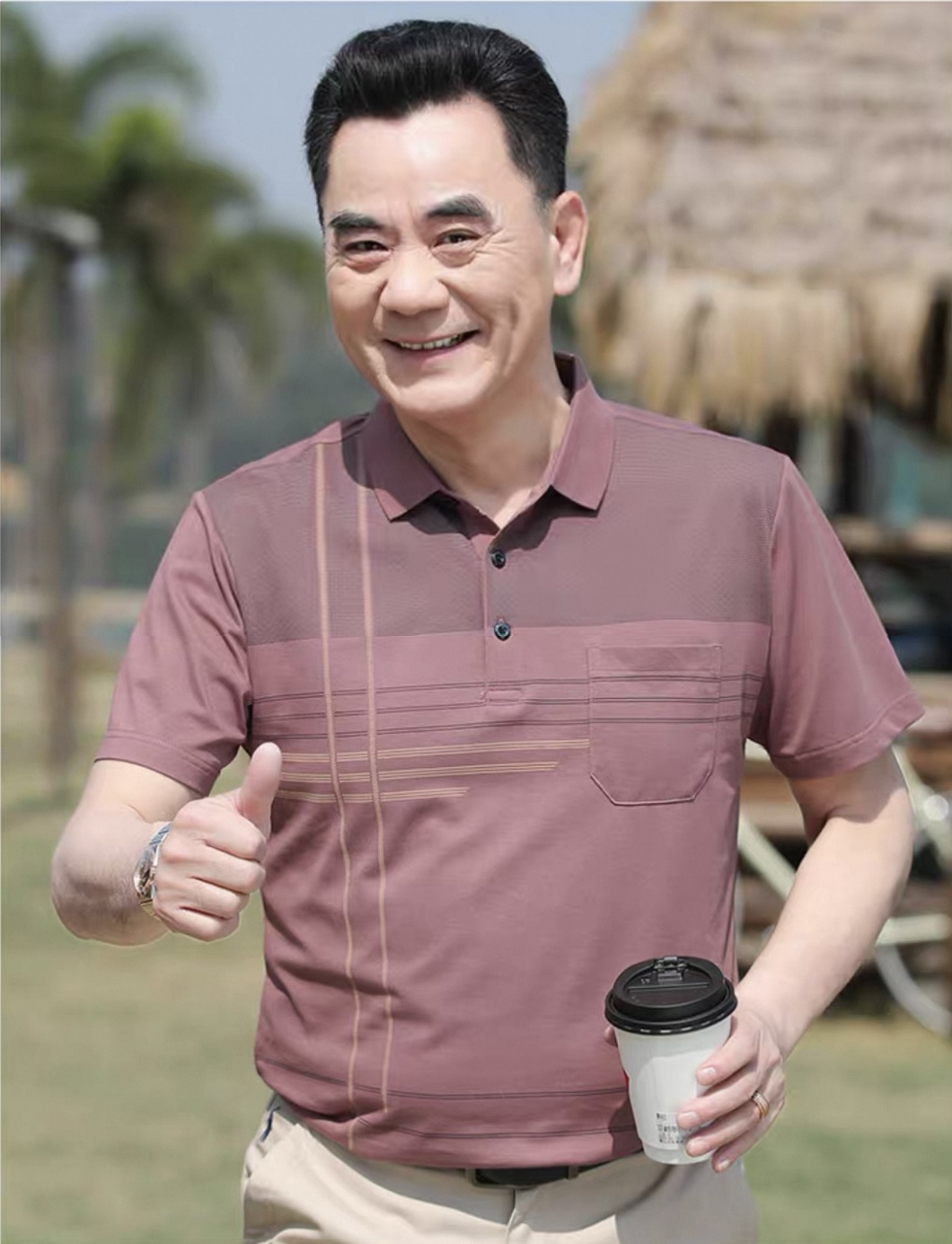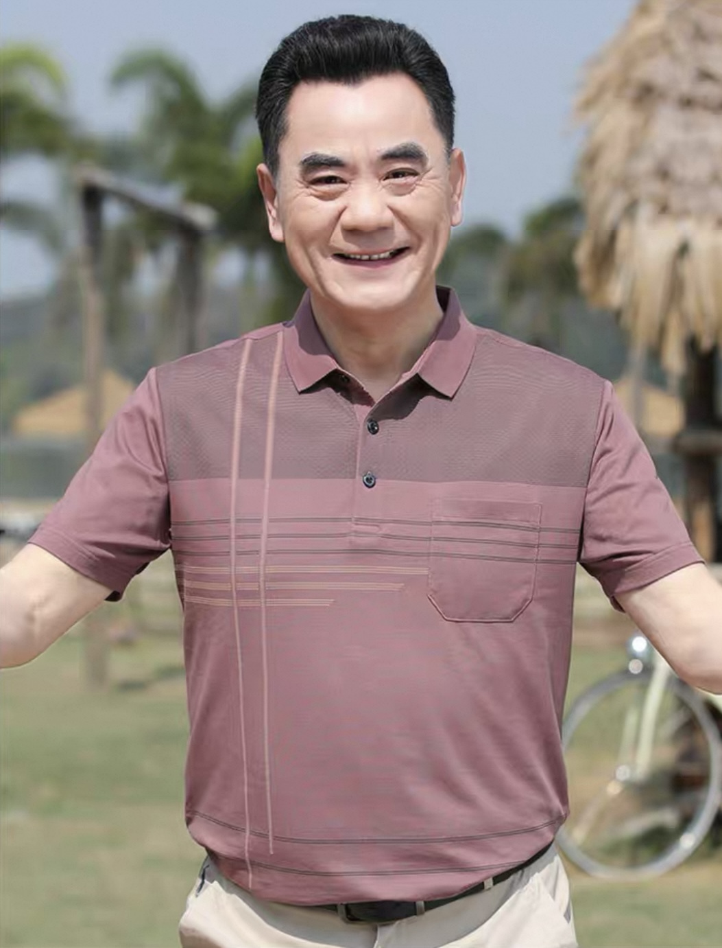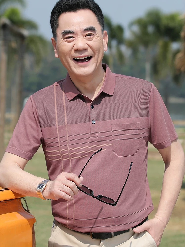 【YW】无忧购夏季凉感透气百搭珠地棉简约条纹休闲中老年爸爸POLO衫8803(截单后7天发货)