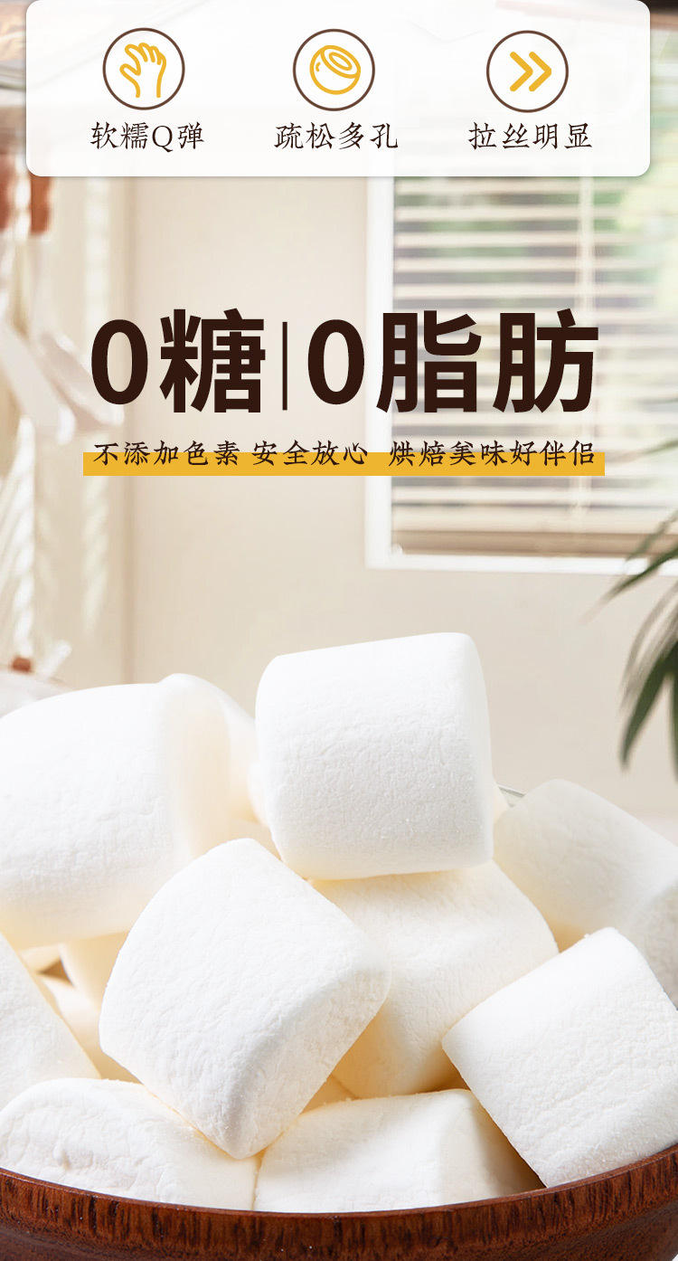 【五袋更超值❗️无糖棉花糖】甄选品质原料制作,0糖0脂肪美味健康无负担,家用雪花酥牛轧糖奶枣diy烘焙原料,下午茶休闲小吃零食L