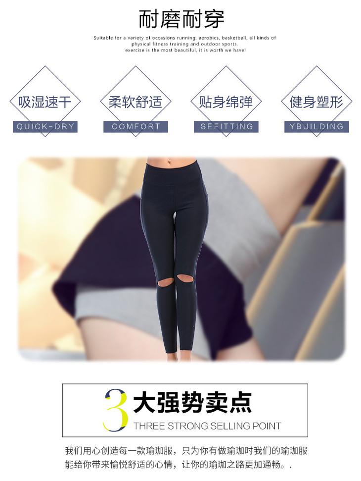 【买一赠一】华威特    瑜伽破洞侧兜九分小脚裤 商品图2