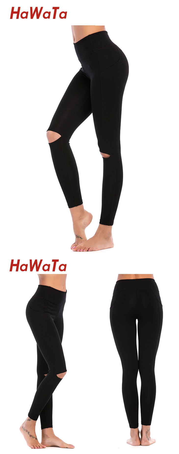 【买一赠一】华威特 瑜伽破洞侧兜九分小脚裤